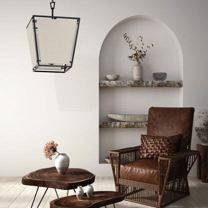 A dark frame of bronze suspends panels of textured oatmeal fabric. Bring in casual comfort with the Montauk collection, a design that easily transitions from more rustic applications to Mediterranean coastal styling.
