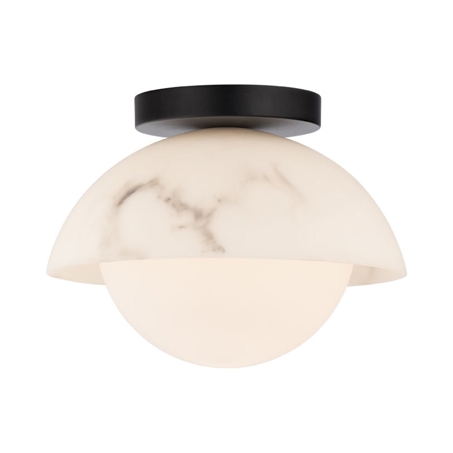 Borrowing from classic retro style, the Moonstone LED Flush Mount Ceiling Light from dweLED delivers sweet silhouetting and a hint of organic charm. Its black metal canopy holds a tempting dome shade fashioned of decorative faux alabaster, as a glass diffuser sends energy-efficient illumination glowing in multiple directions.