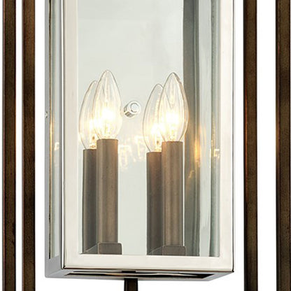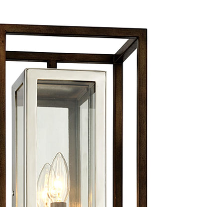 Dual finishes of bronze and polished stainless steel form a geometric nestled effect in the glam-inspired Morgan Outdoor Wall Light from Troy Lighting.