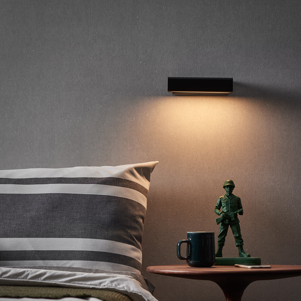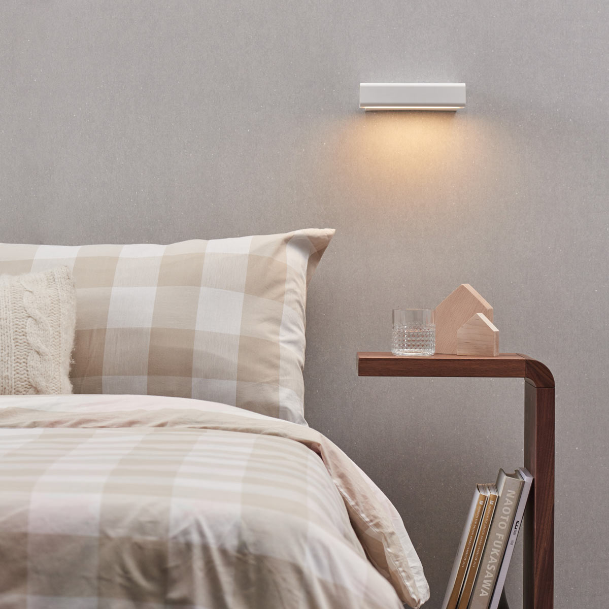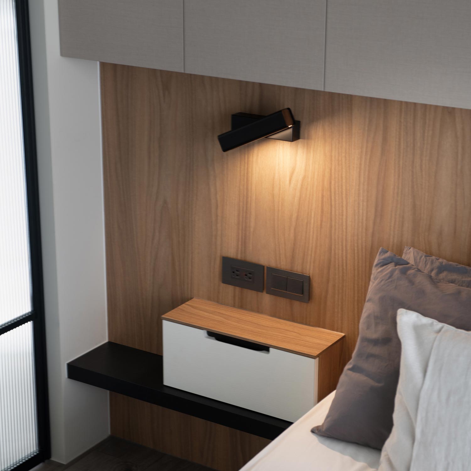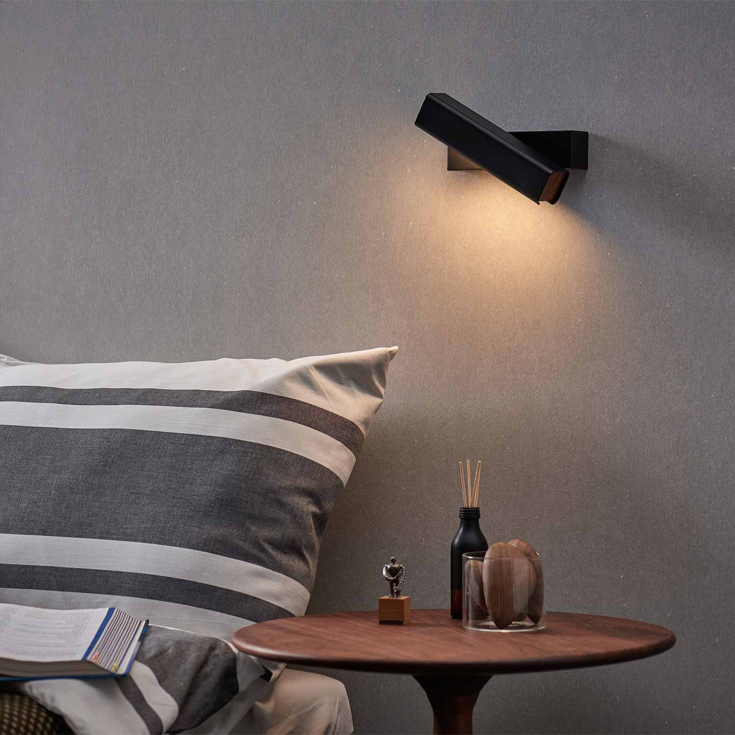 Design principles adopt an architectural mode dressed up with the natural beauty of wood and metal blended to create drama. The Mumu LED Wall Light from Seed Design delivers energy-efficient illumination with a dual-part rectangular mix of elements that adjust to send targeted lighting around a bedroom or living area.