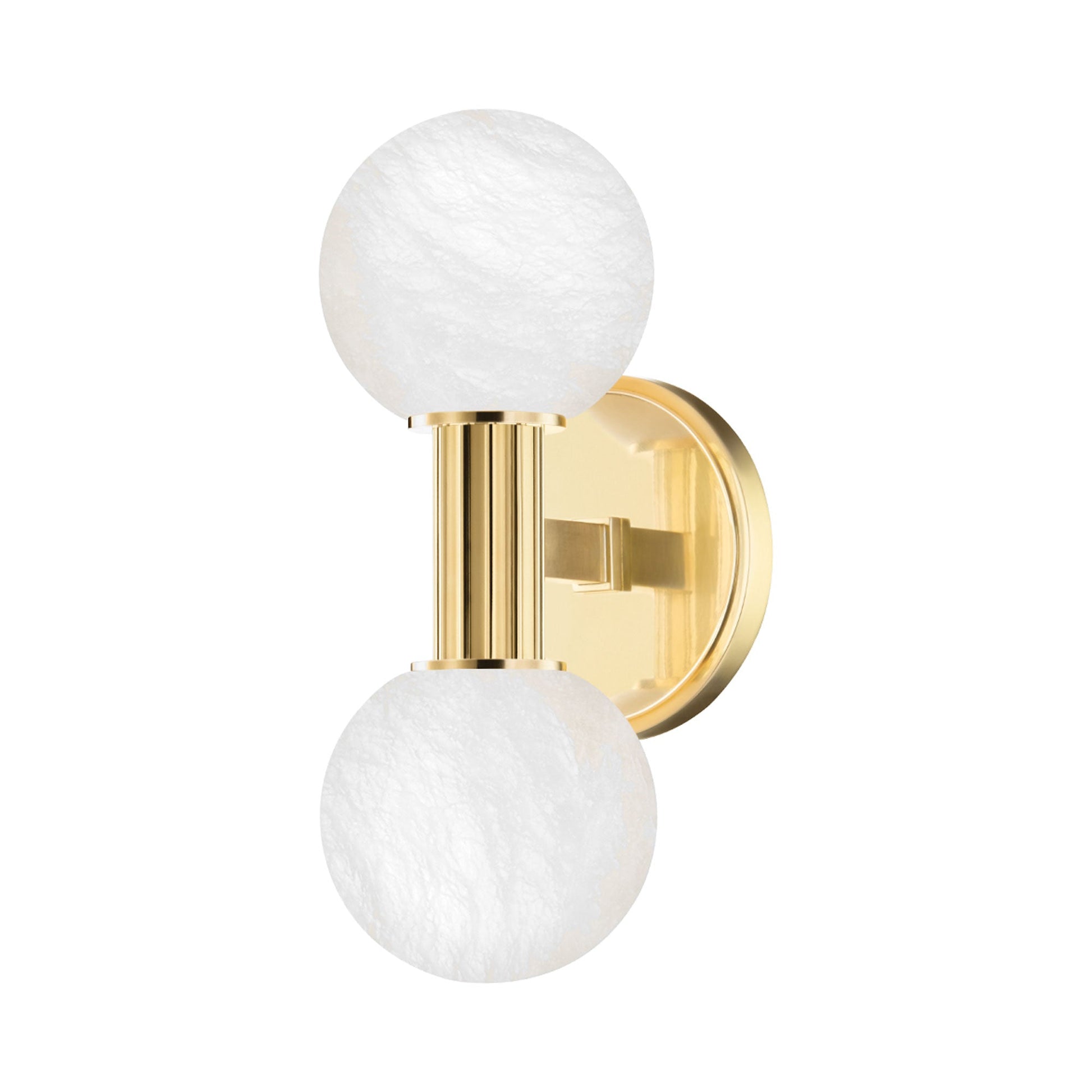 The Murray Hill Double Wall Light from Hudson Valley Lighting embraces an Art Deco feel with a dual Spanish Alabaster globe shade silhouette and gleaming metal available in a variety of finishes.