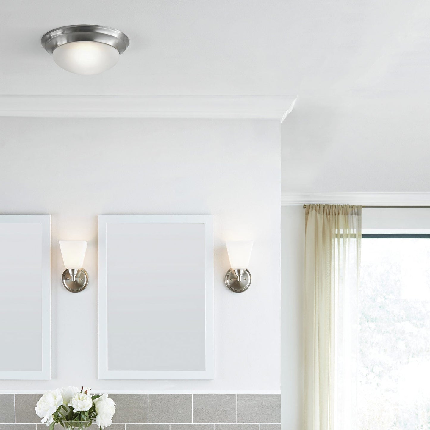 Subtle contouring brings design elegance to the Nash Flush Mount Ceiling Light from Generation Lighting, a superb option for kitchens and foyers. This energy efficient fixture features a lush metal canopy nestling a satin etched glass dome shade. Utilitarian and yet minimalist, it glows with energy-efficient illumination.