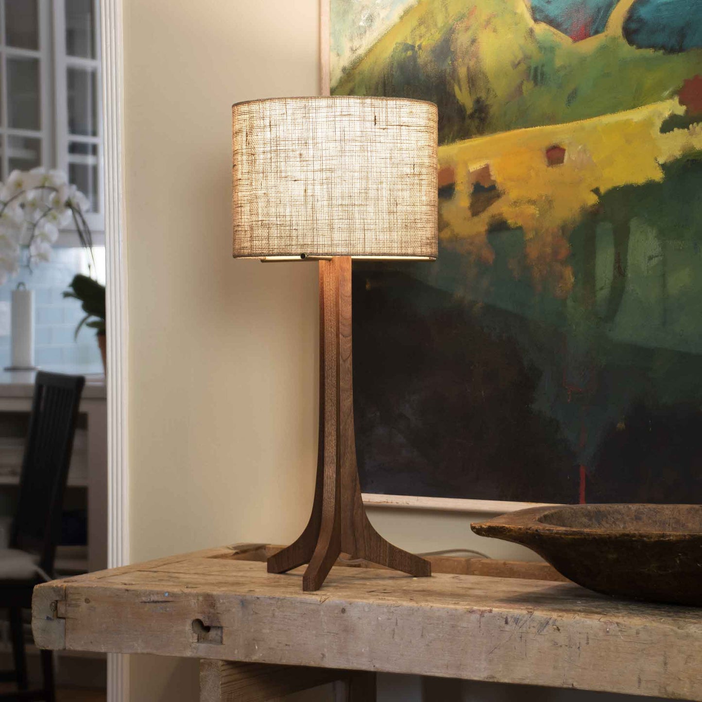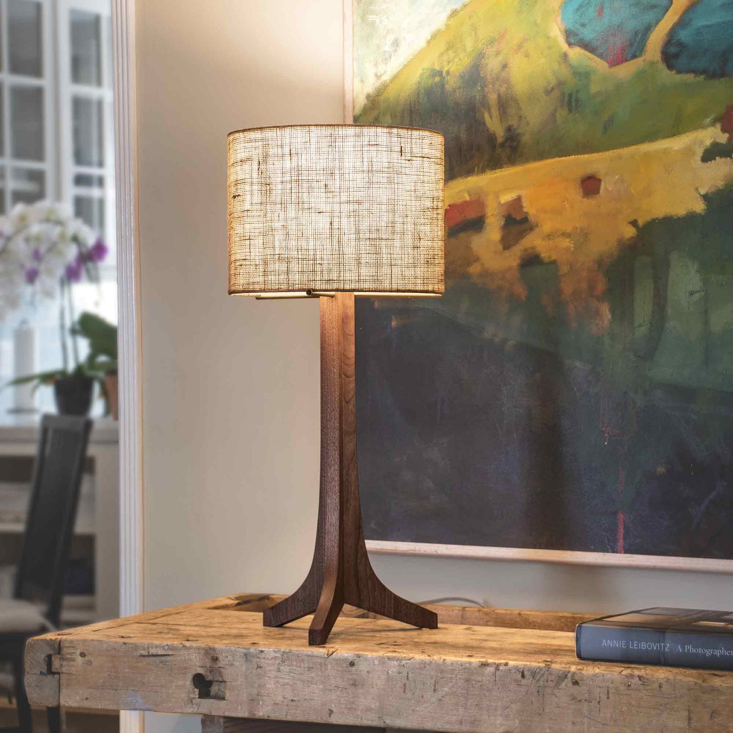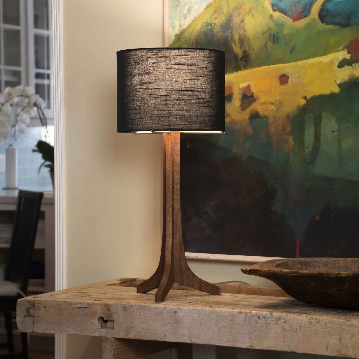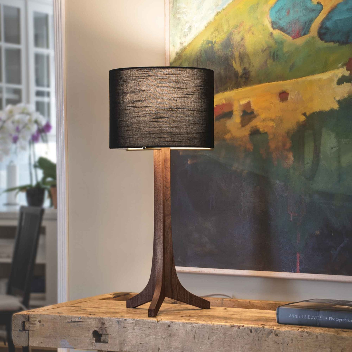 Modern design adopts a flavor of Swedish modern, transforming a casual space with the sleek style of the energy-efficient Nauta Table Lamp from Cerno. Natural ambiance expresses an easy feel with an alluringly tapered silhouette blending wood and fabric to deliver minimalism that gets noticed.