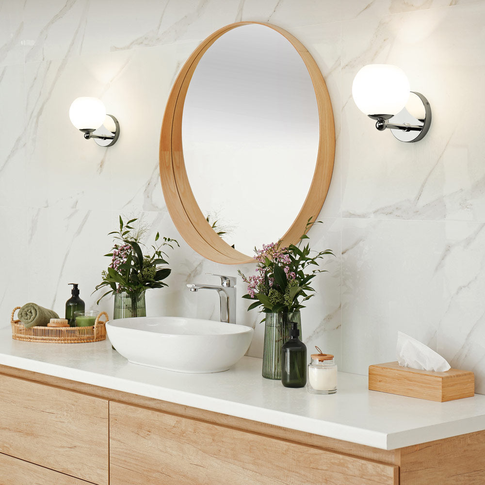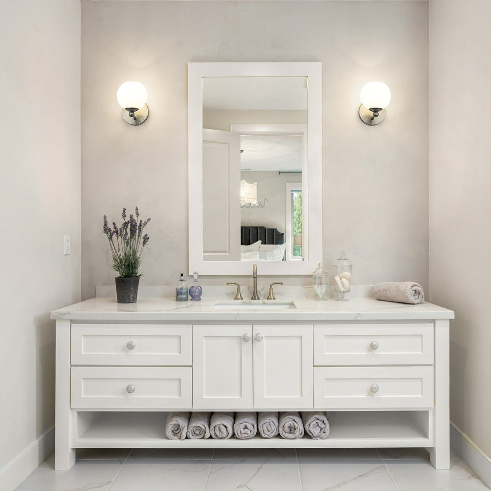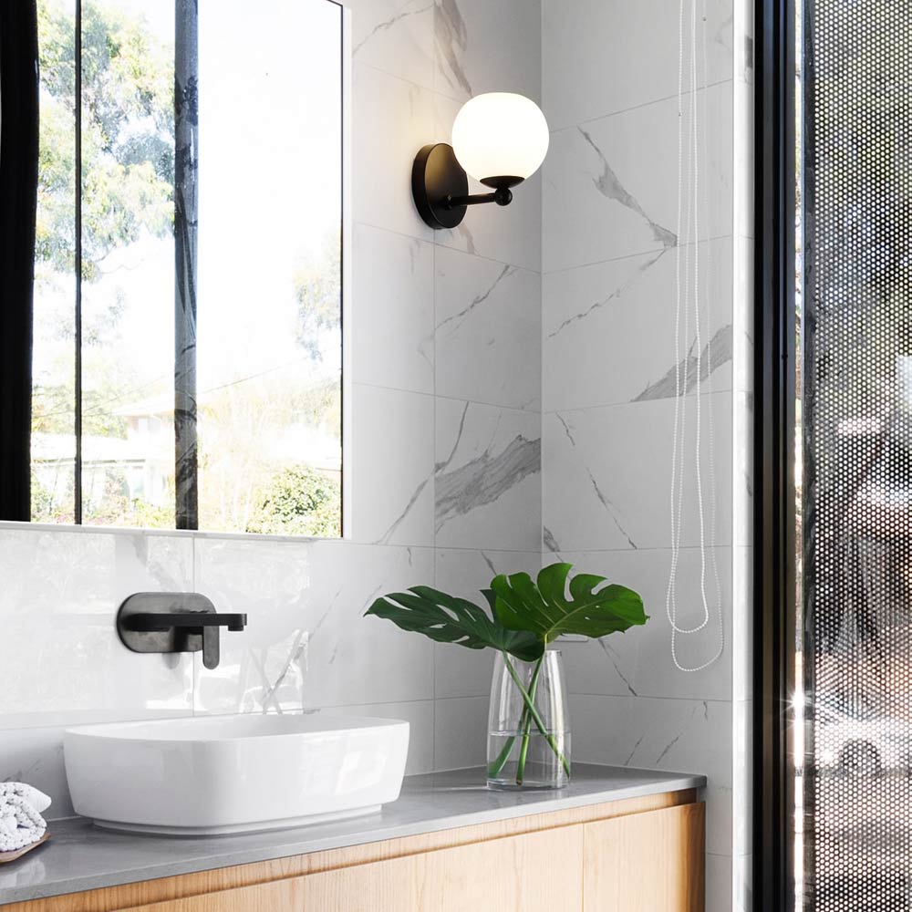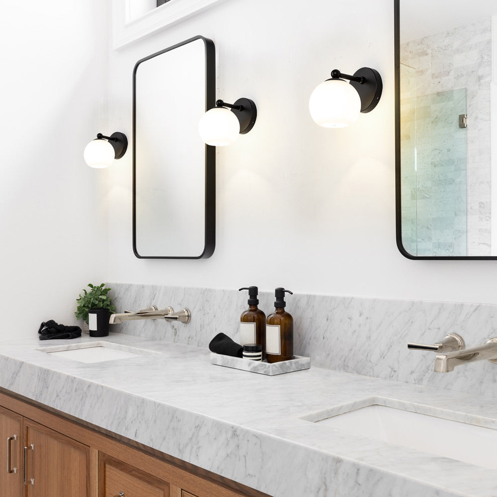 Obvious dramatic flavor creates a charming motif suited to modern spaces in need of illumination. The Neoma Bath Wall Light from Z-Lite showcases an iconic orb shade, with opal etched glass playing a starring role. Metal framing and subtle yet whimsical accents embellish the design creds of a versatile and stylish light.