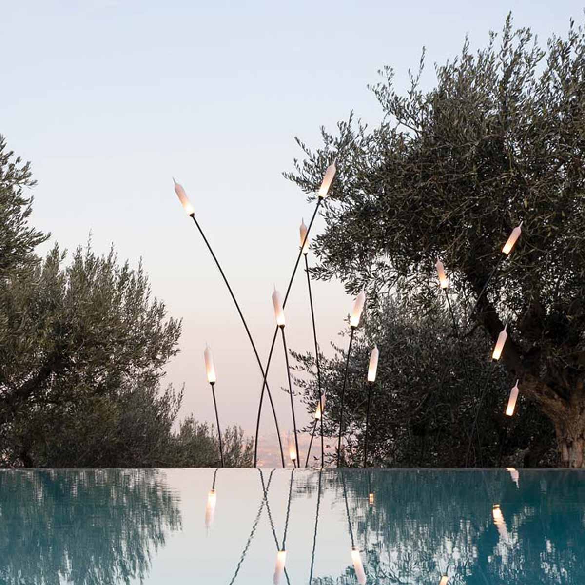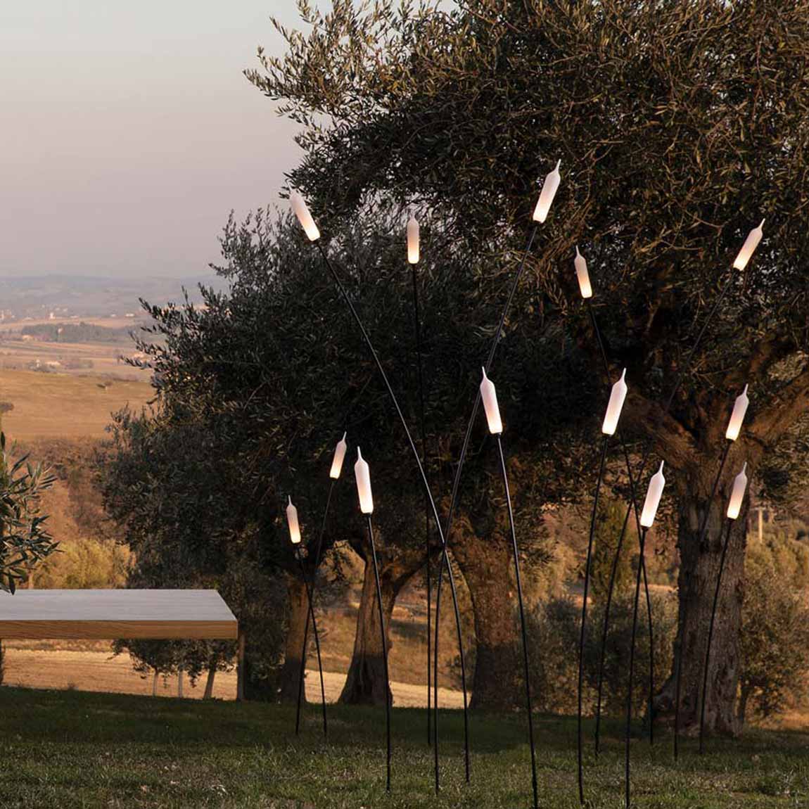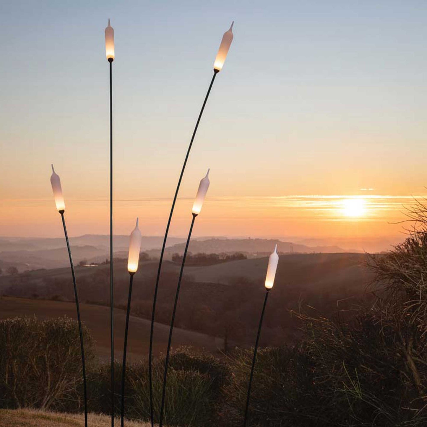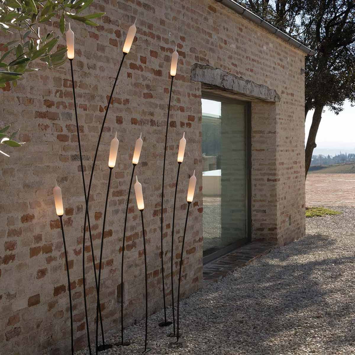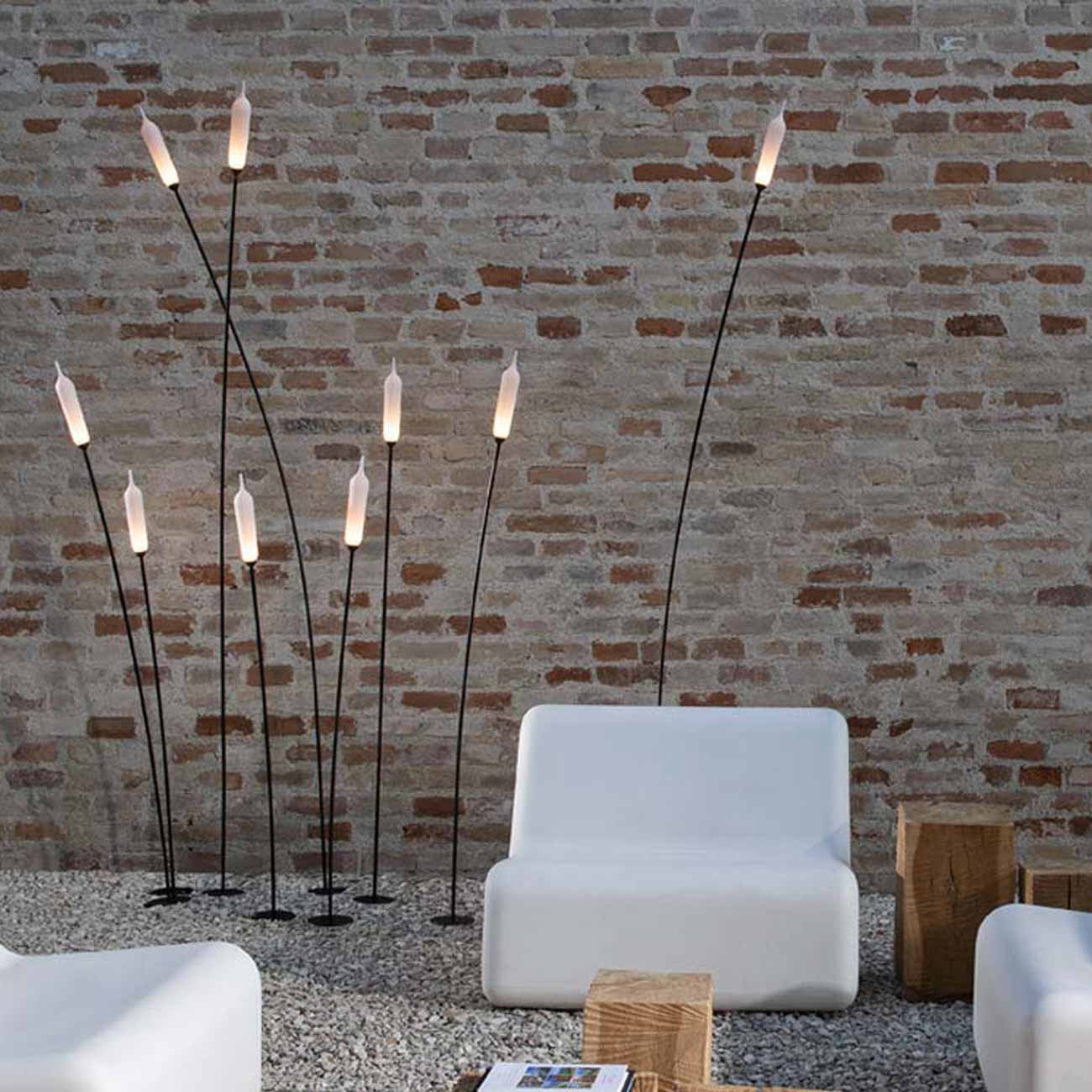 Resembling a swaying cattail, the Nilo Outdoor LED Floor Lamp from Karman lends a botanical-inspired touch to the corner of a room for an eye-catching flair. An illuminated tip beckons you into a room with its hypnotic glow.