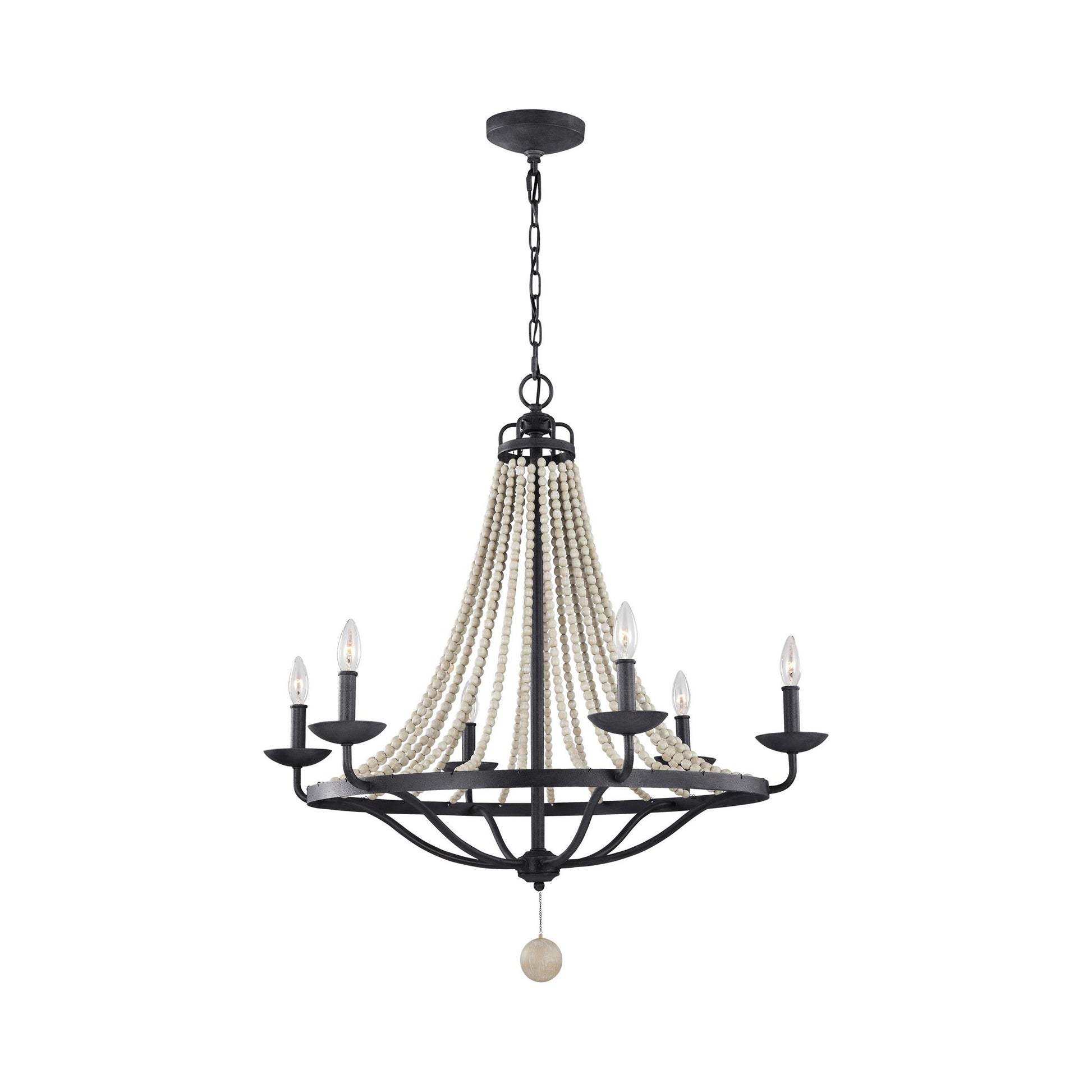 The Nori Chandelier is the perfect way to achieve your desired fashion or functional needs in your home. The Nori Collection features vintage elements like beautifully cascading Driftwood Grey Wood beads and the rustic flair of a Dark Weathered Zinc finish. On the chandeliers, an optional large Driftwood Grey Wood bead suspends from the center of the frame, adding a touch of elegance to a traditional silhouette.