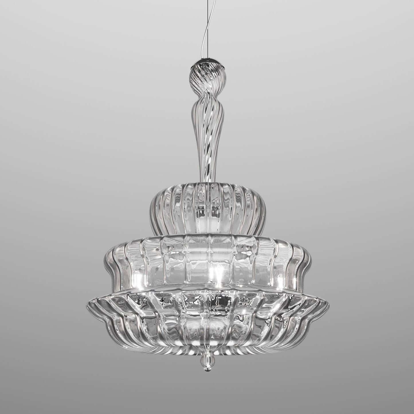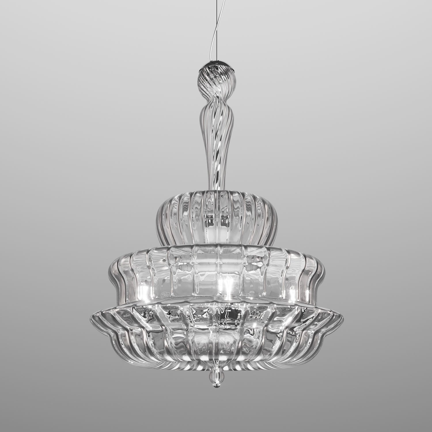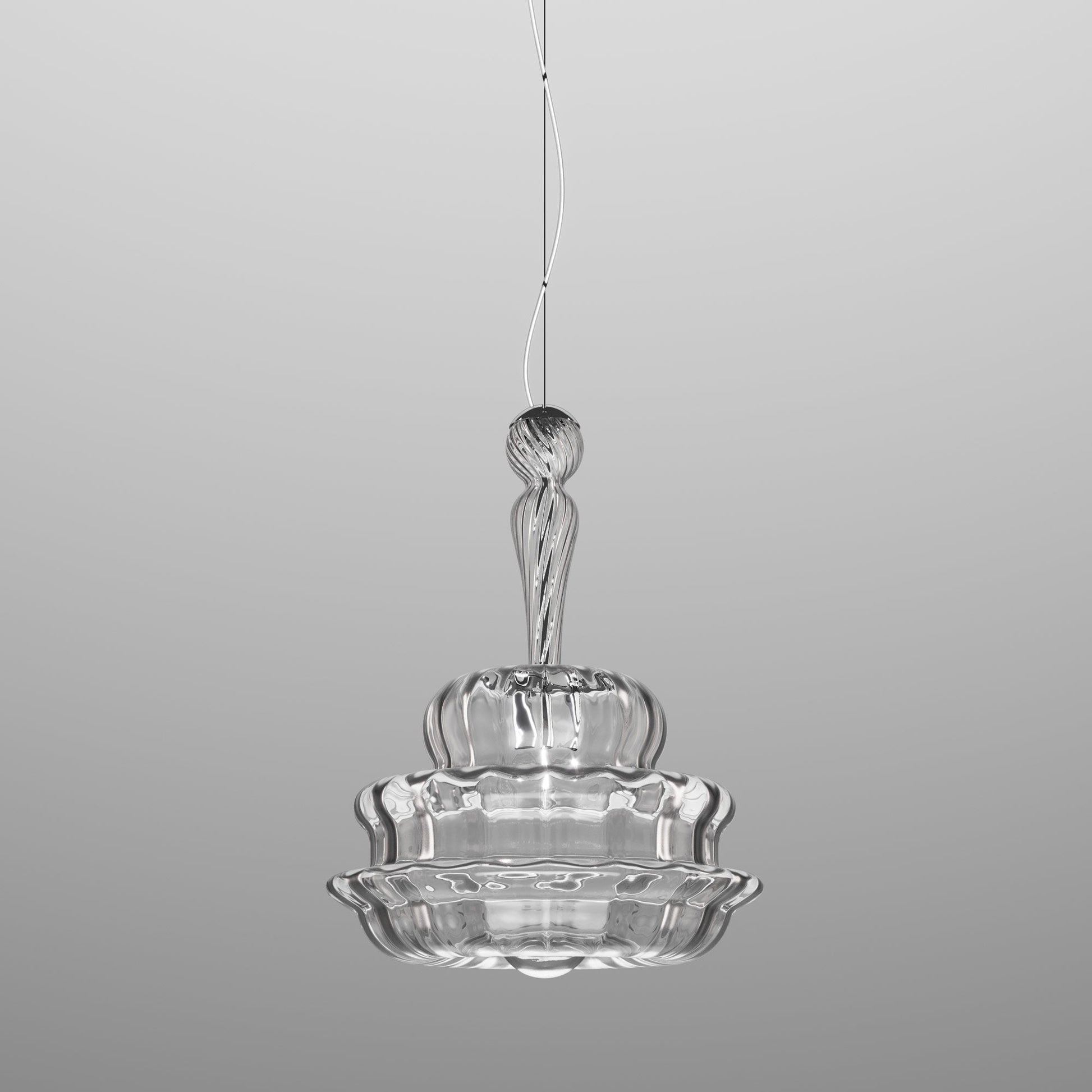 Art intersects with utility in the most romantic way, creating an exceptional example of glam lighting. The Novecento Pendant Light from Vistosi delivers on intrigue and intricate design elements with a layered silhouette and a rich, delicate glass shade.