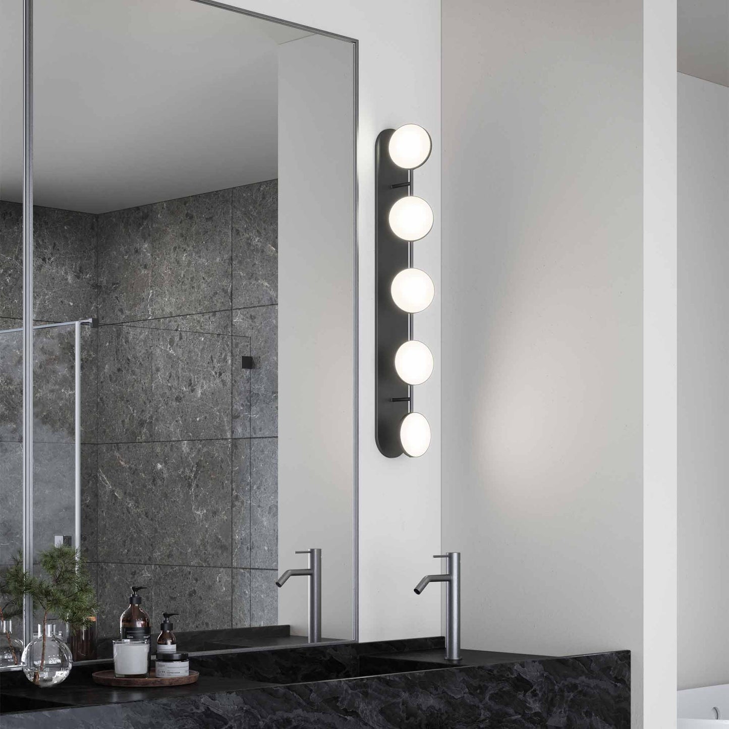 Ultra-contemporary studio vibes make the Novel LED Bath Vanity Wall Light from Kuzco Lighting an energetic choice that stylizes modern bathrooms. Choose this bold black framed dual light with spotlight elements that adjust to offer perfect energy-efficient lighting.