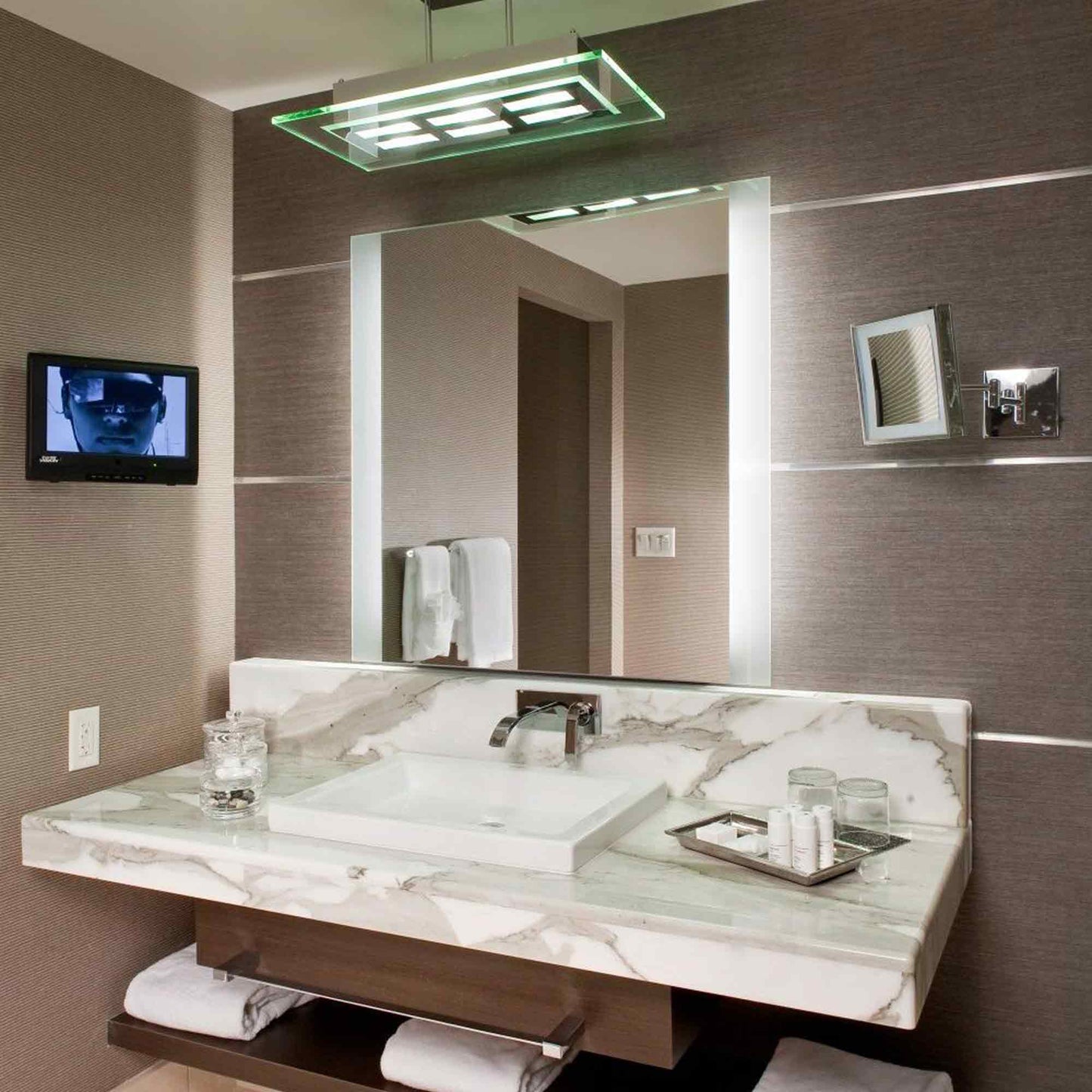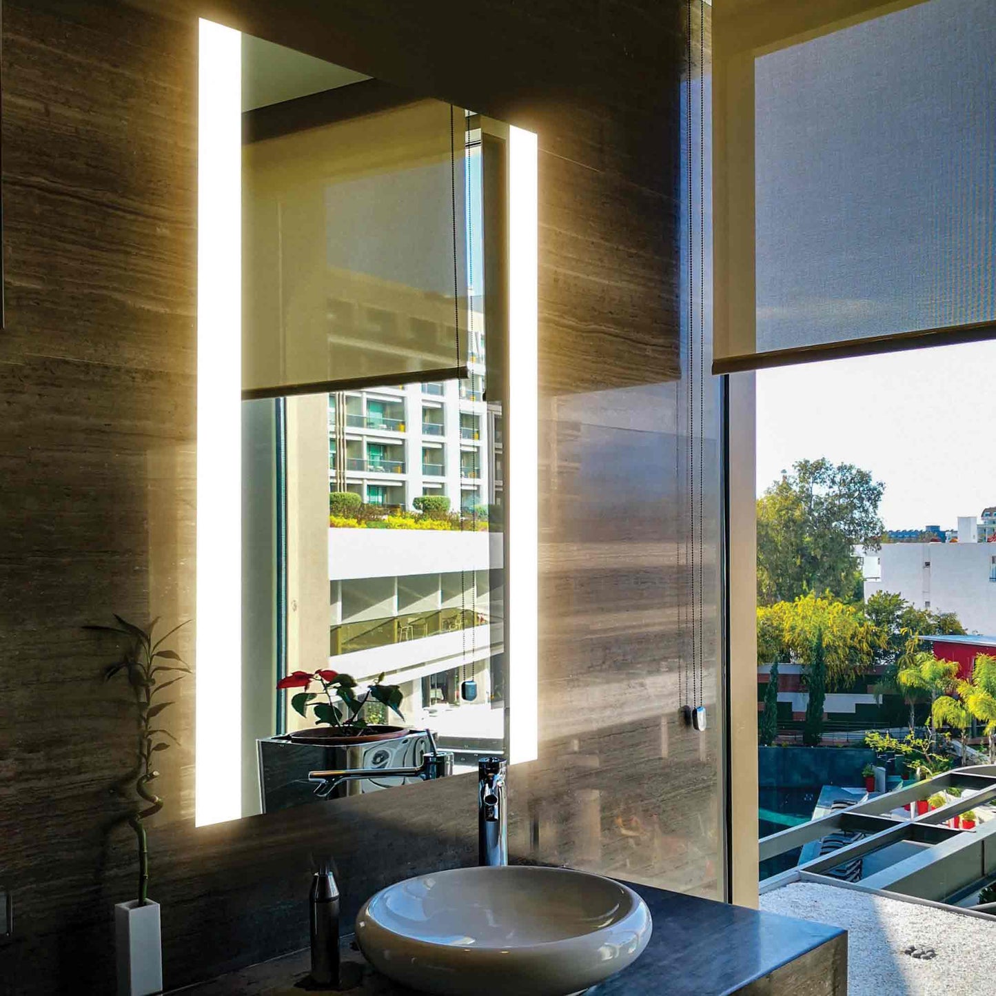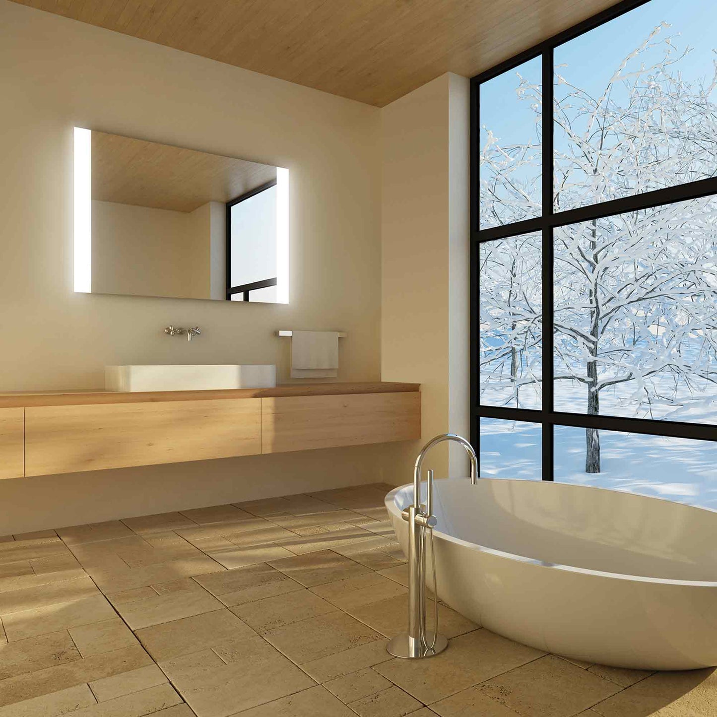 A soft wall glow combines with lovely task lighting to create wonderful illumination for this Novo LED Lighted Mirror from Electric Mirror.