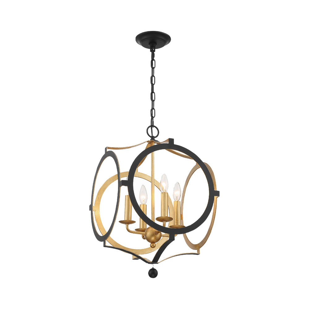 The Odelle Chandelier from Crystorama and its playful design turns heads as it lights up a modern living or dining space with personality. A playful geometric design blends rings and fluid openwork metal elements, juxtaposed with the romantic flavor of candelabra lighting. Make this fixture an expressive statement of outspoken style.