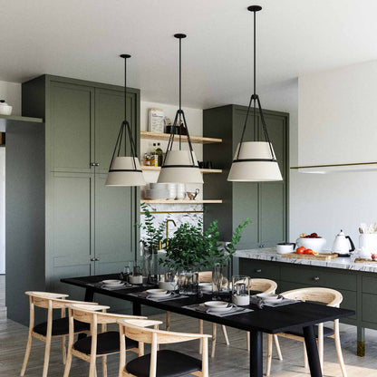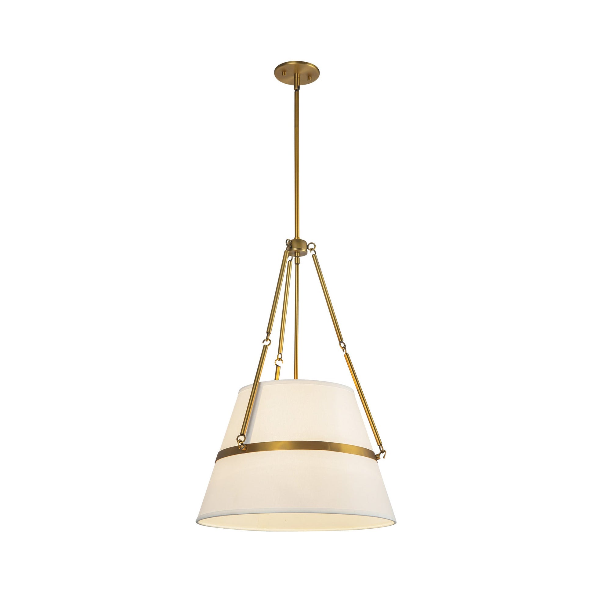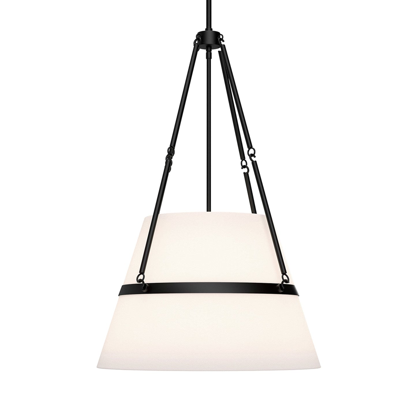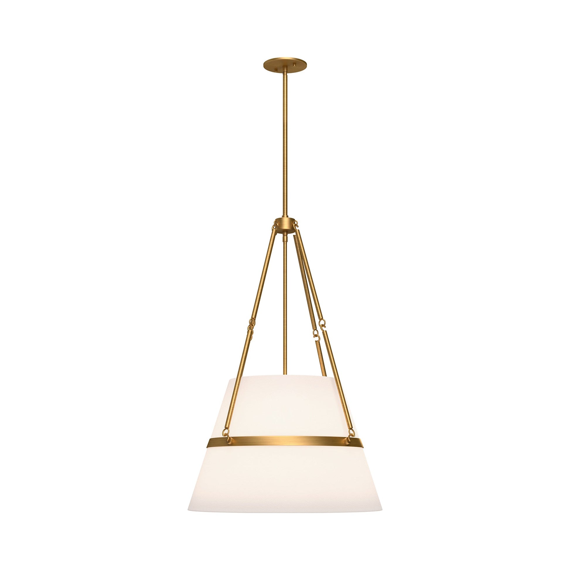 Inspired artistry softens the slight infusion of industrial design elements forming the elegant Oliver Pendant Light from Alora Mood. Eye-pleasing silhouetting forms a reverse conical shade made of white linen and accented with a metallic stem as well as framing elements that yield a refined look of simplicity.