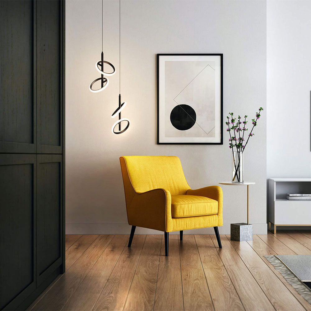 Introduce a dose of drama with the adjustable rings decorating this Olympia 2-Ring LED Pendant Light from DALS. Intriguing over an entry or in a kitchen, the pendant pairs glowing rings of light with a black finish to create optimal contrast and definition. An artistic design that livens up any living space.