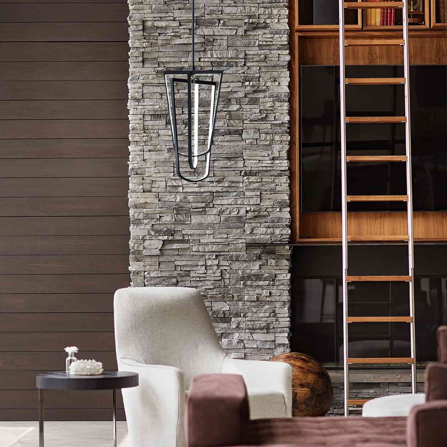 Lighted frames are nested to create an open, sculptural presentation for the Onyx LED Pendant Light from Frederick Ramond.