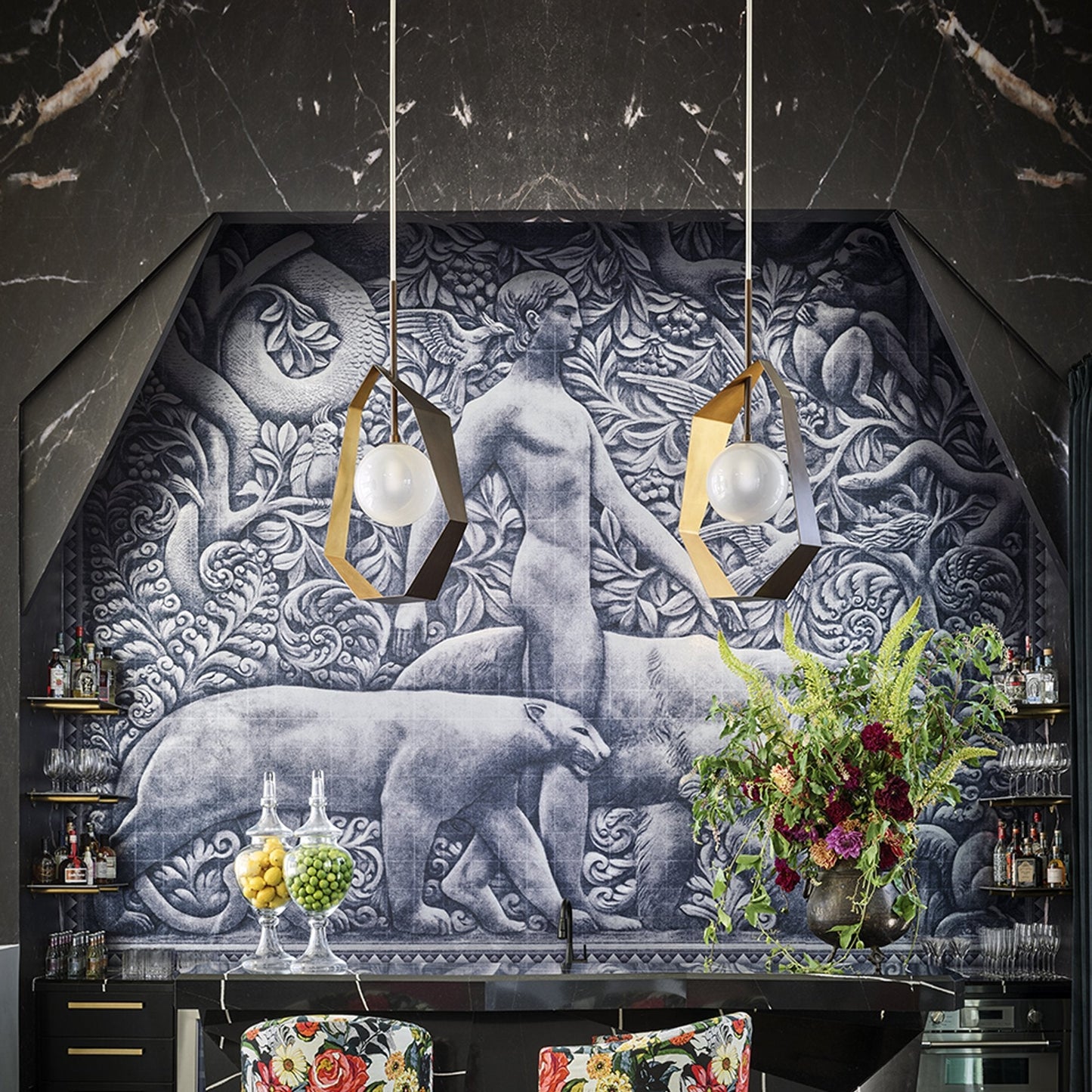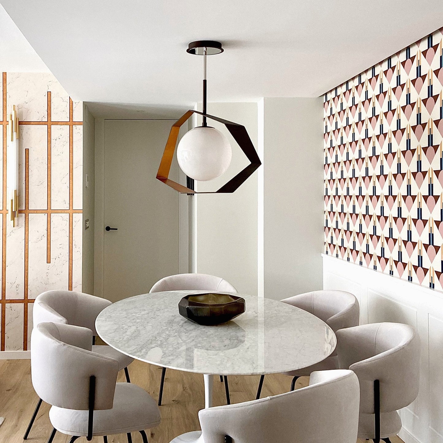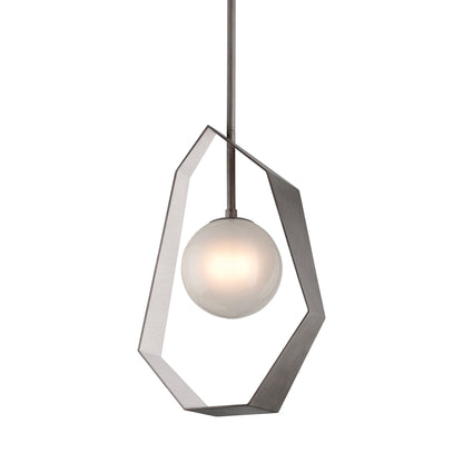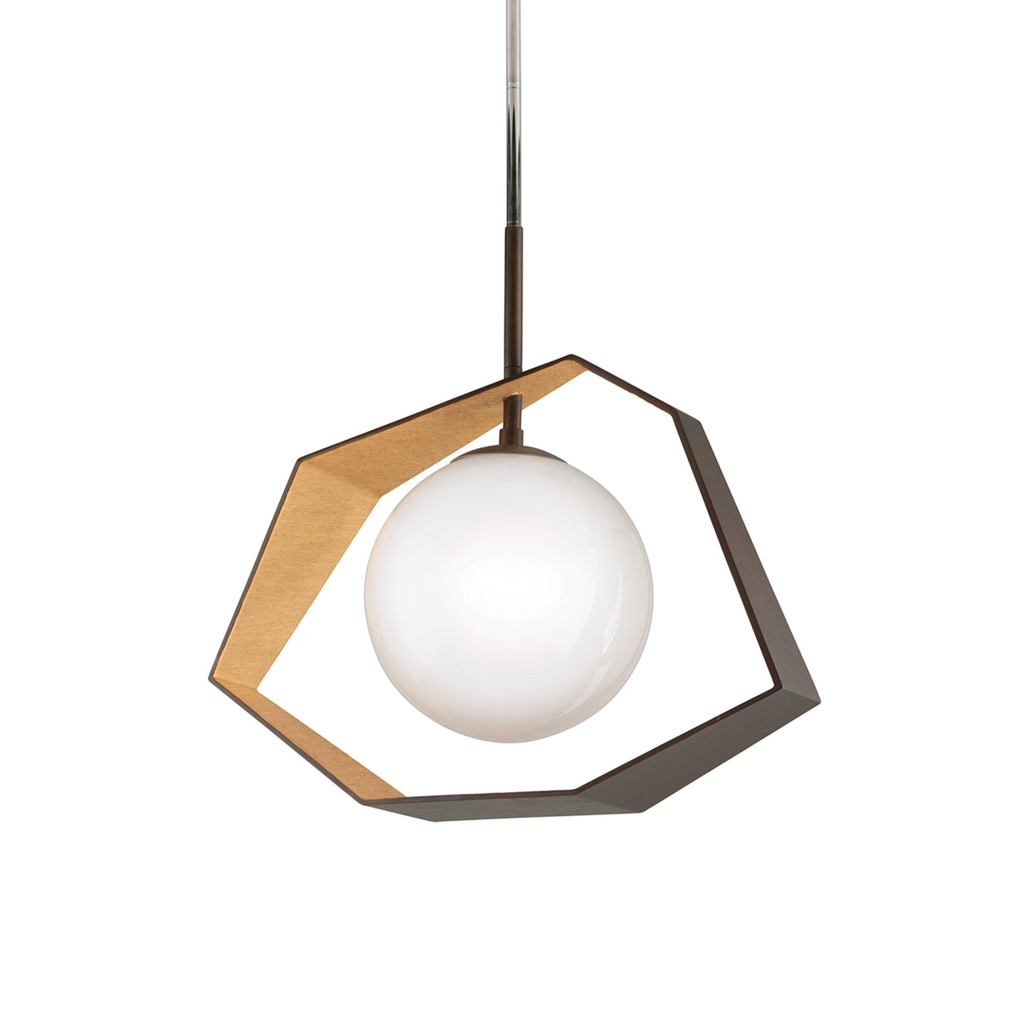 Decadent modern Asian style showcases glam with the metal angular frame and frosted clear glass bulb that stylize the Origami Pendant Light from Troy Lighting.