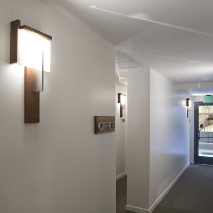 Intrigue delivers asymmetry and a bit of Mid-Century Modern character to the Oris LED Wall Light from Cerno, an energy-efficient source of lighting for a casual living room, hallway, or bedroom. Solid wood flats accented with an aluminum strip secure a novel frosted polymer diffuser, forming a rustic yet charming light with a bevy of personality.