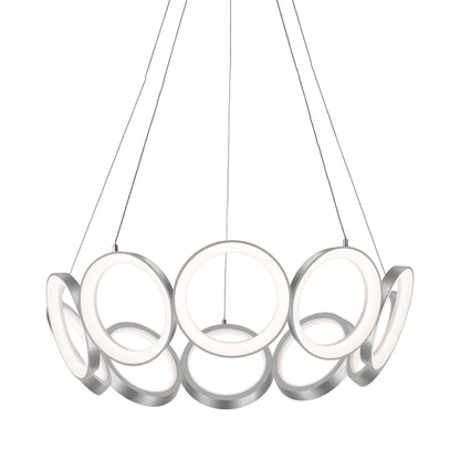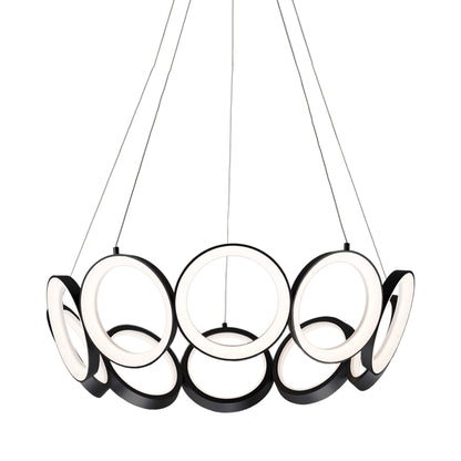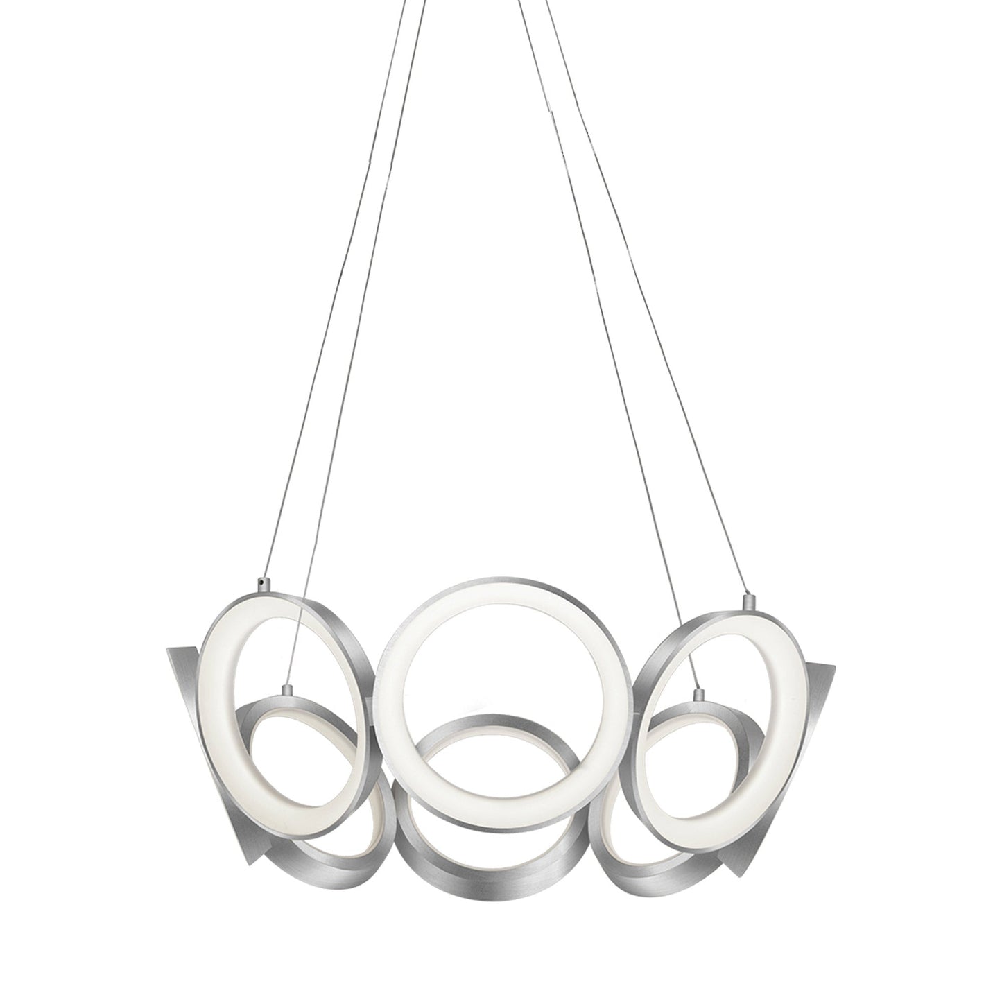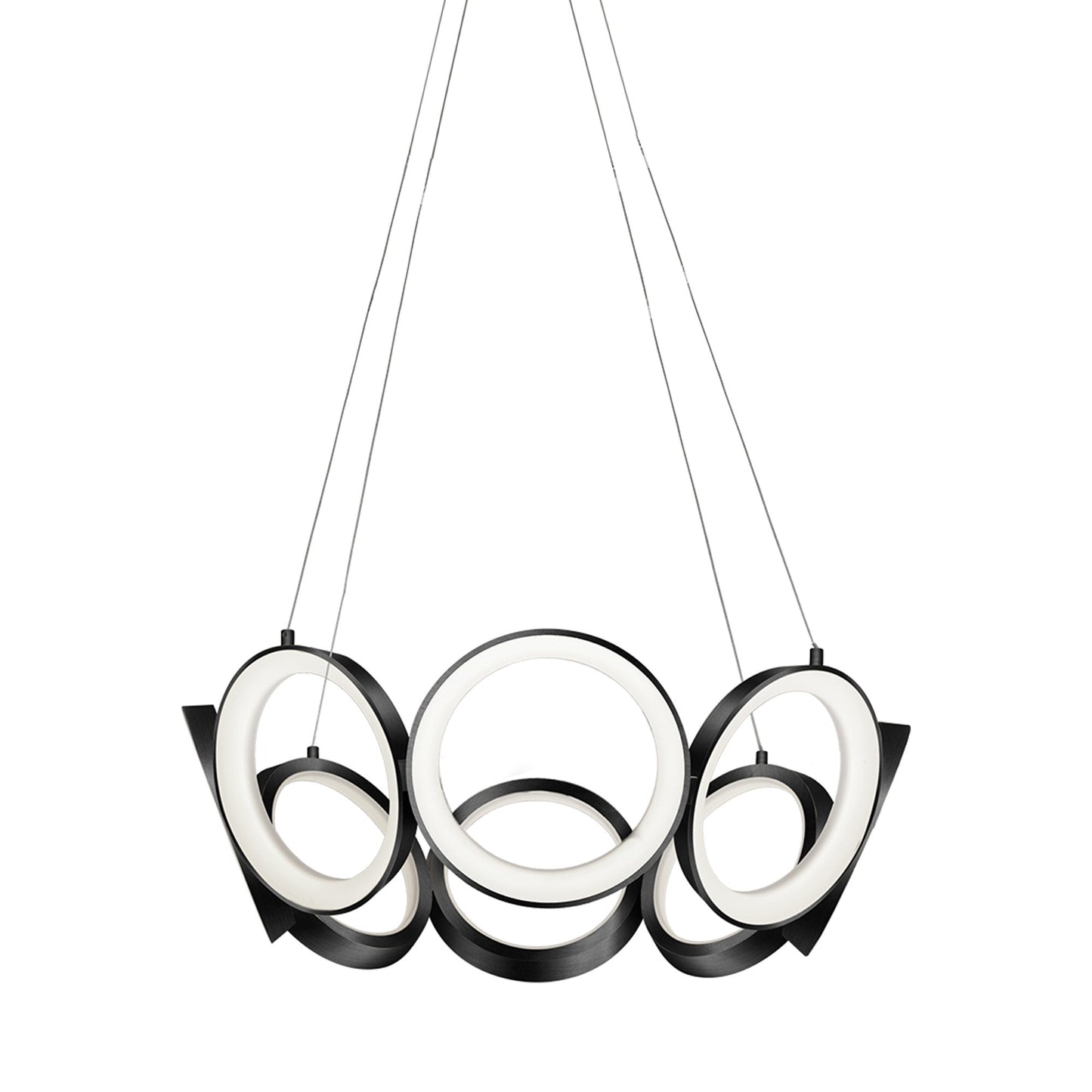 The Oros LED Chandelier from Kuzco Lighting returns to a fashion-forward Art Deco motif present in Mid-Century times and adds a cheery vibe to any setting. Energy-efficient lighting flows through diffusers lining die-cast aluminum rings that attach to create a circular silhouette. The impact of illumination sourced from an outward perspective is statement-making.