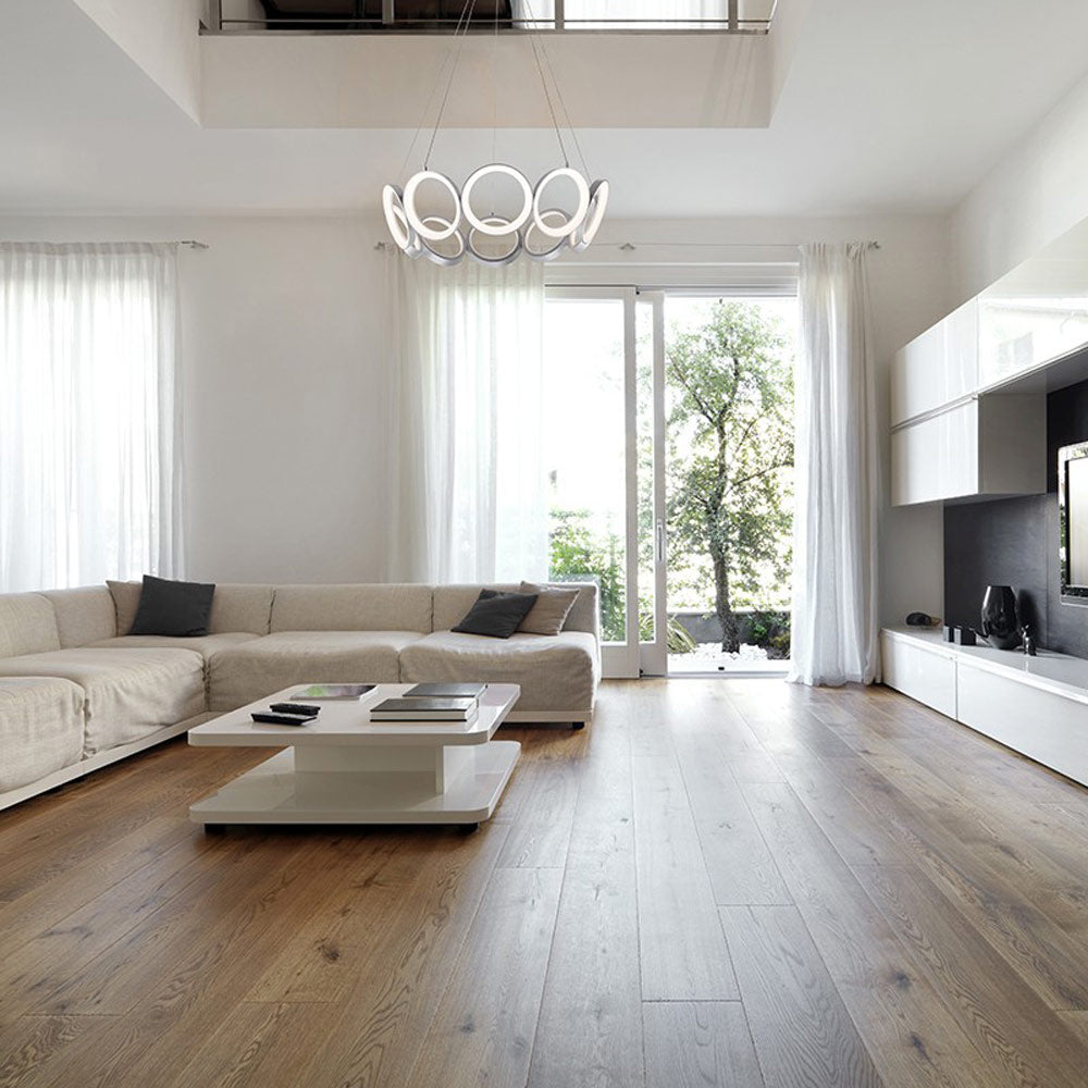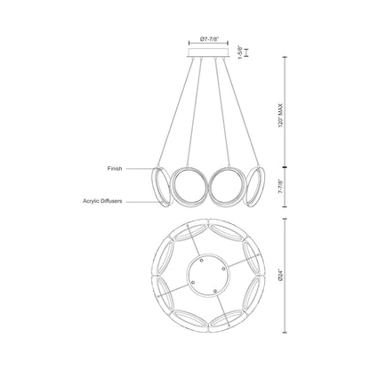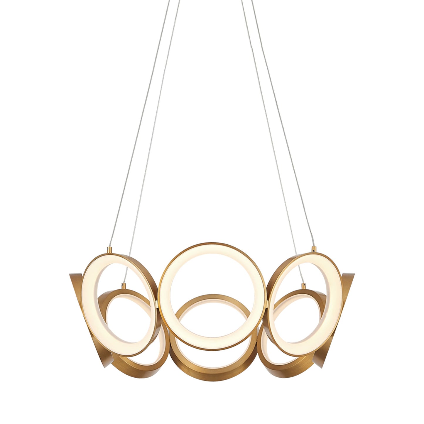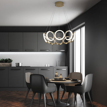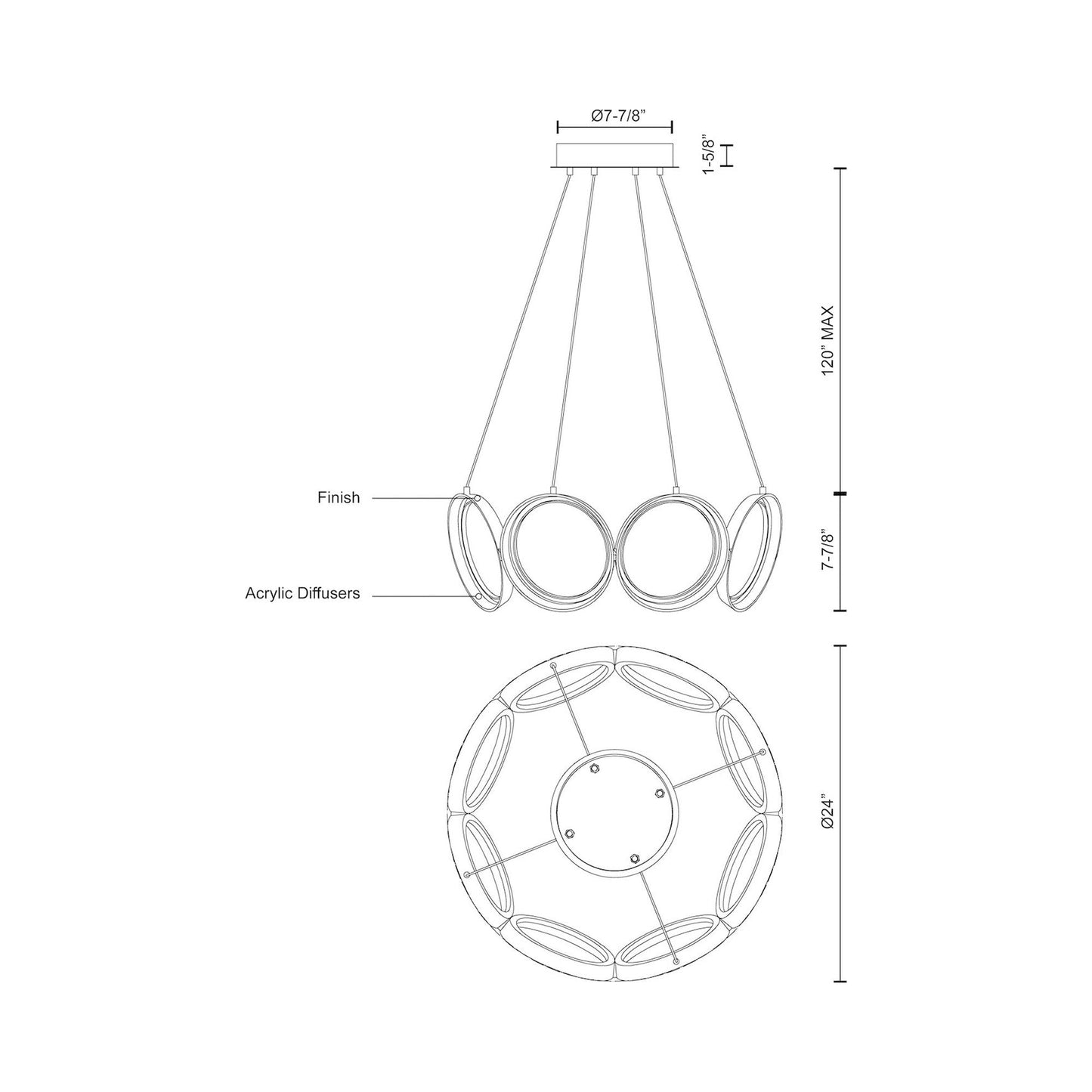 The Oros LED Chandelier from Kuzco Lighting returns to a fashion-forward Art Deco motif present in Mid-Century times and adds a cheery vibe to any setting. Energy-efficient lighting flows through diffusers lining die-cast aluminum rings that attach to create a circular silhouette. The impact of illumination sourced from an outward perspective is statement-making.