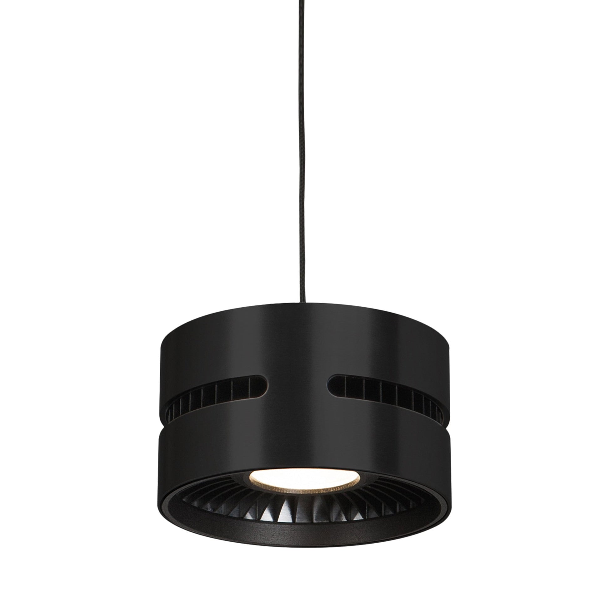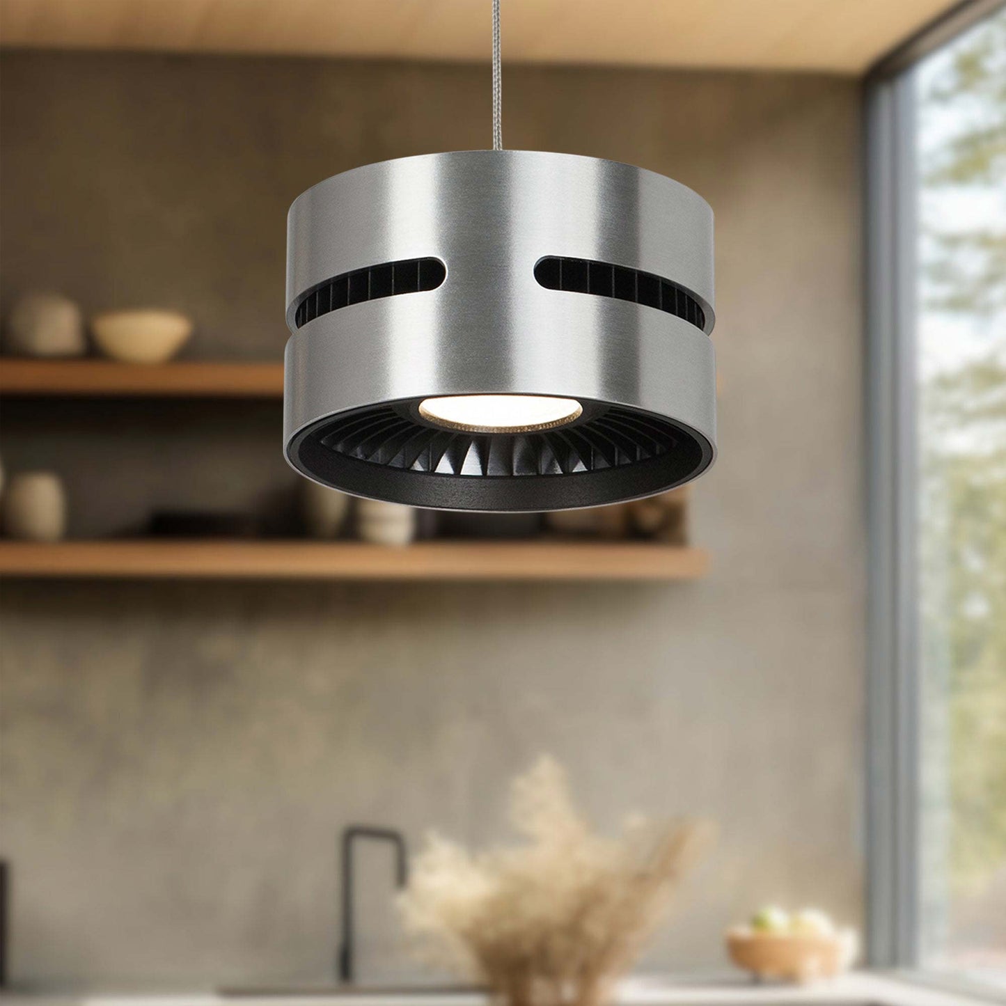 Turn to industrial inspiration to illuminate a modern space with simplicity and ultra-bold style. Heavy gauged aluminum forms a cylinder shade with sleek slits as the Oxford LED Pendant Light from Kuzco Lighting drills down to basics. A visible heatsink and 45 degree integrated reflector magnify the powerful light flow that works in both living and working settings.