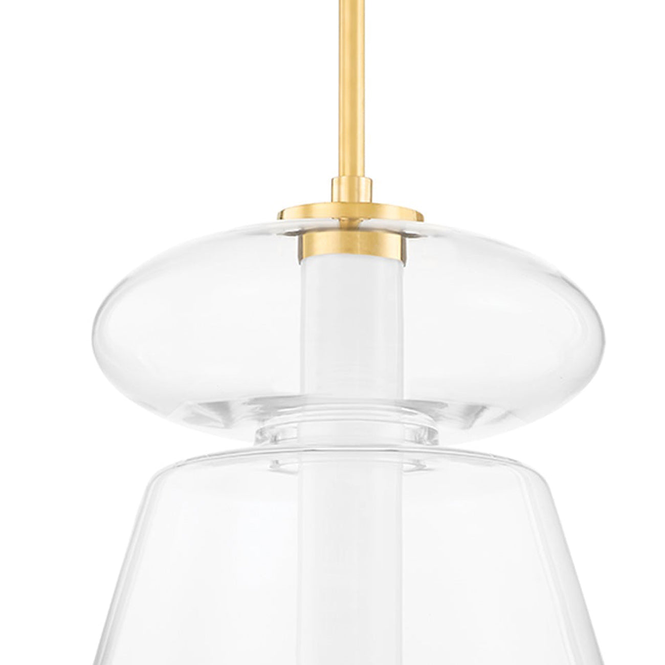 Keen attention to silhouetting shapes delicate clear glass into a two-part shade, adding energy-saving illumination and a chic sense of sophistication from the Palermo 5313 LED Pendant Light from Hudson Valley Lighting.