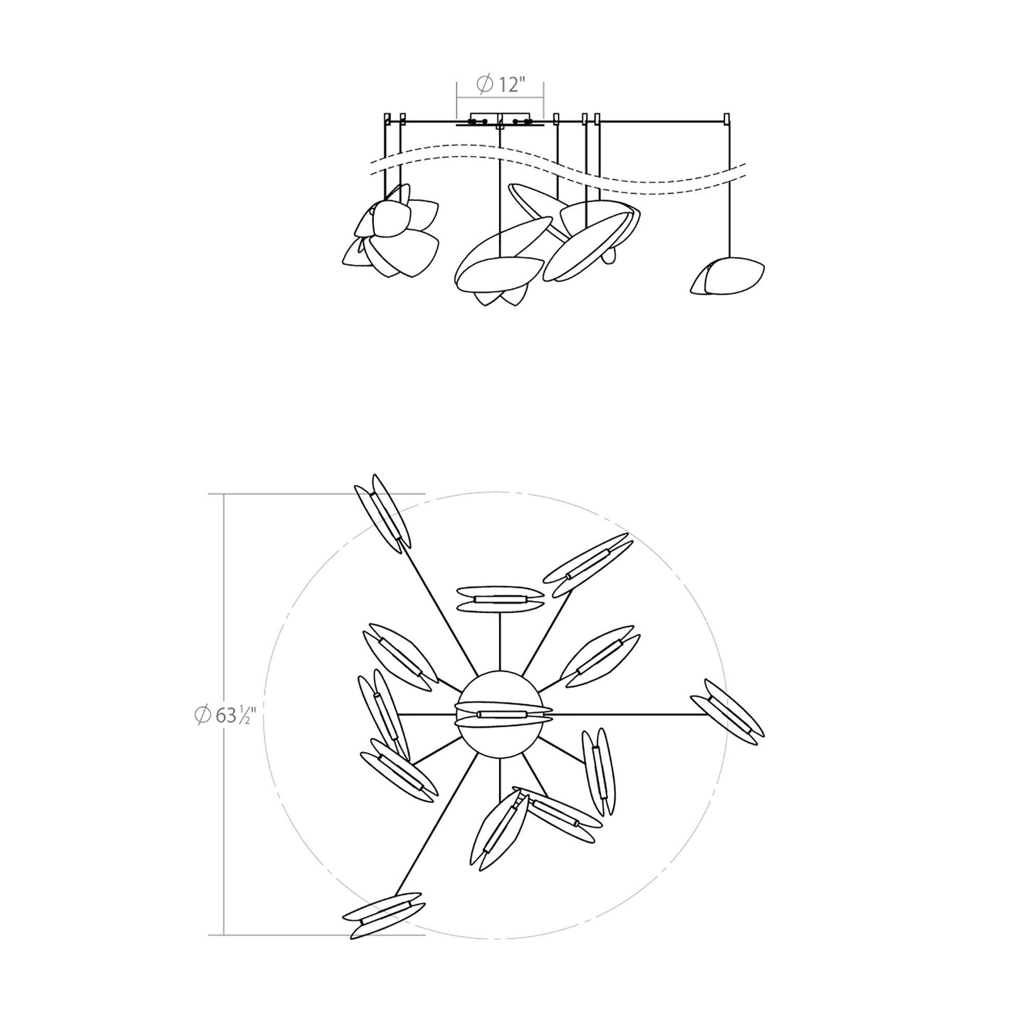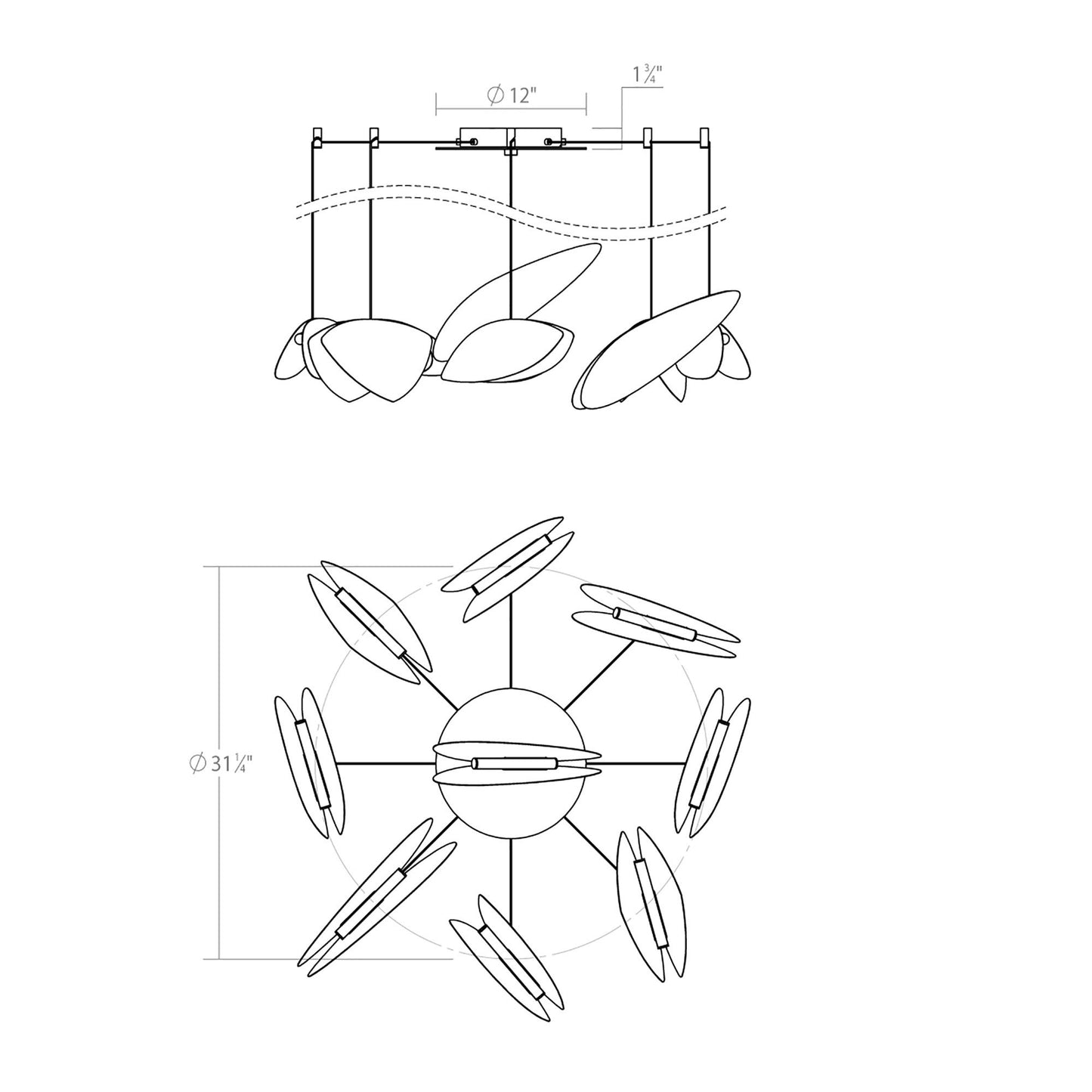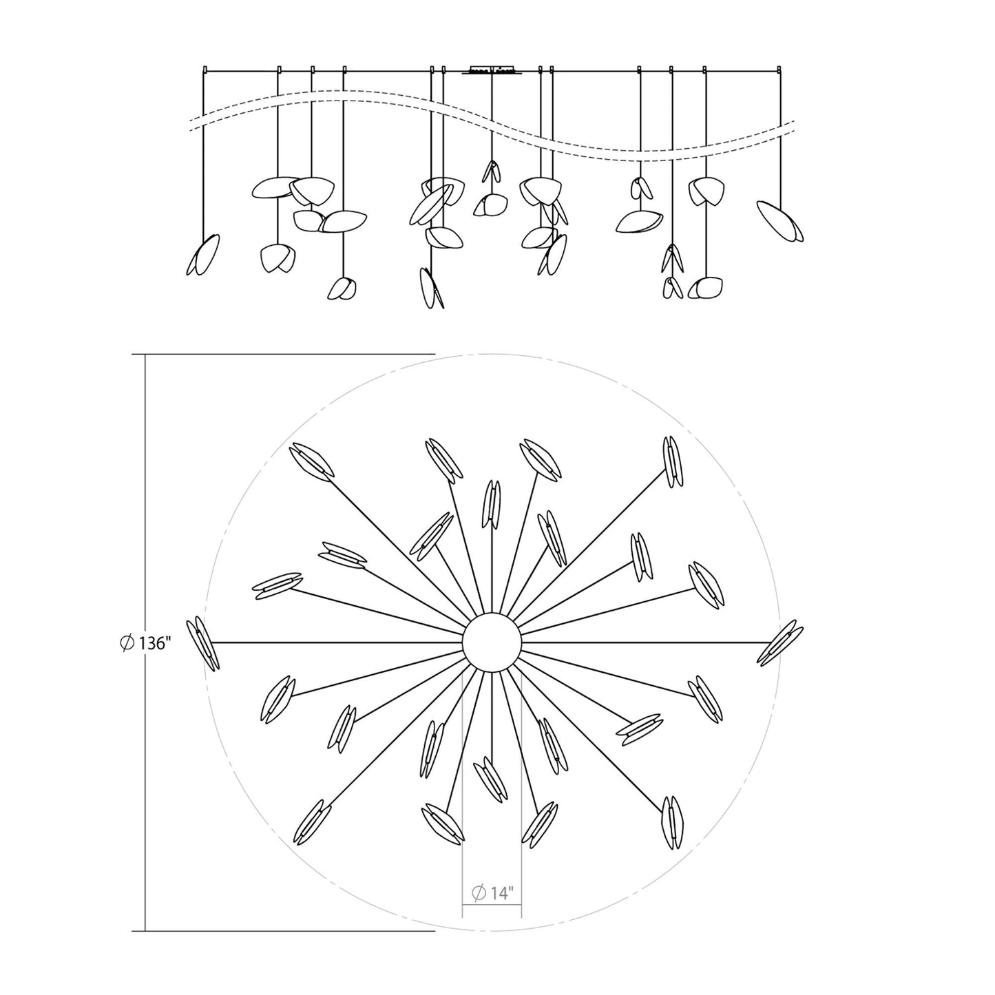 - 13-Light: 30"D X 6.75"H; 128" max height