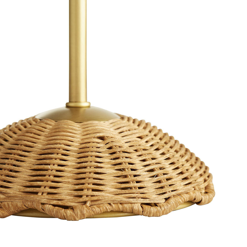 Like a dainty southern umbrella, the Parasol Table Lamp from Arteriors adds a delicate design with a shade to filter strong light. Coastal influence is natural and charming in a lamp with a woven natural rattan shade featuring perfectly scalloped edges, and a petite base to match. A stainless steel stem delivers a touch of gleam to round out the casual yet tropical feel of this lamp.