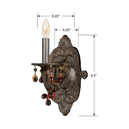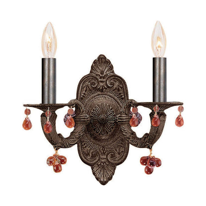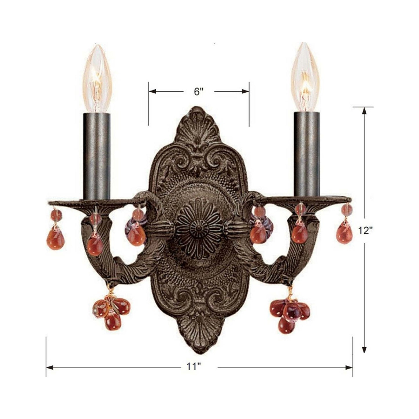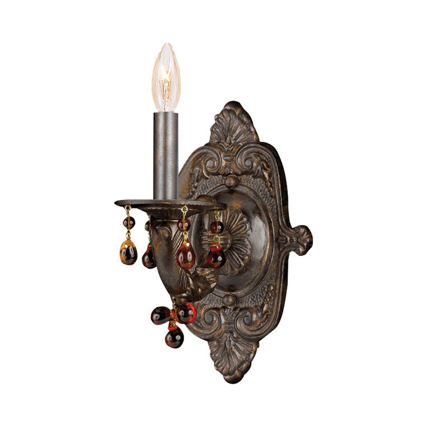 Bring a taste of the dramatic with artisan elegance to a traditional setting in need of accent lighting. The Paris Market Murano Wall Light from Crystorama offers a rich Venetian bronze finish to intricate and shapely metal framing, ideal for infusing decadence to more subtle style motifs. Lamping features candelabra sleeves shedding soft illumination reflected through exquisite amber crystal faceted drops.