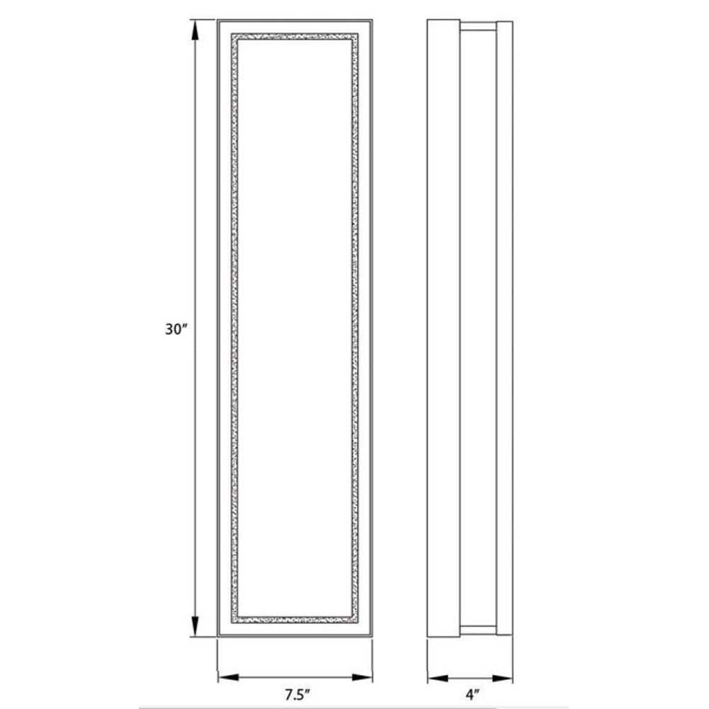 - 30-Inch: 7.5"W X 30"H; 4" Extension