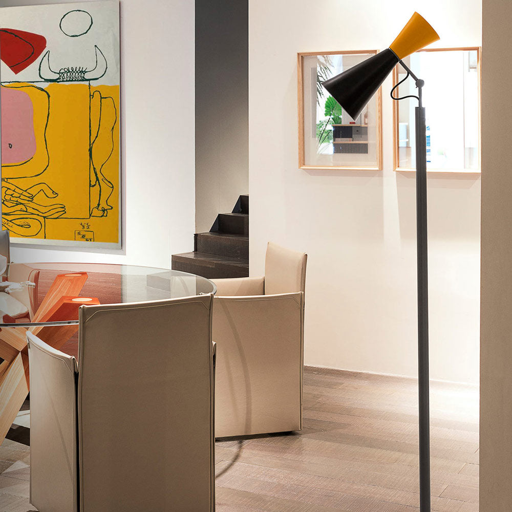 Make direct and indirect lighting a thing in a classic modern space with a penchant toward retro and Mid-Century Modern influence. The Parliament Floor Lamp from NEMO captures a functional studio aesthetic with a colorful bonus and a classic display of productive minimalism.