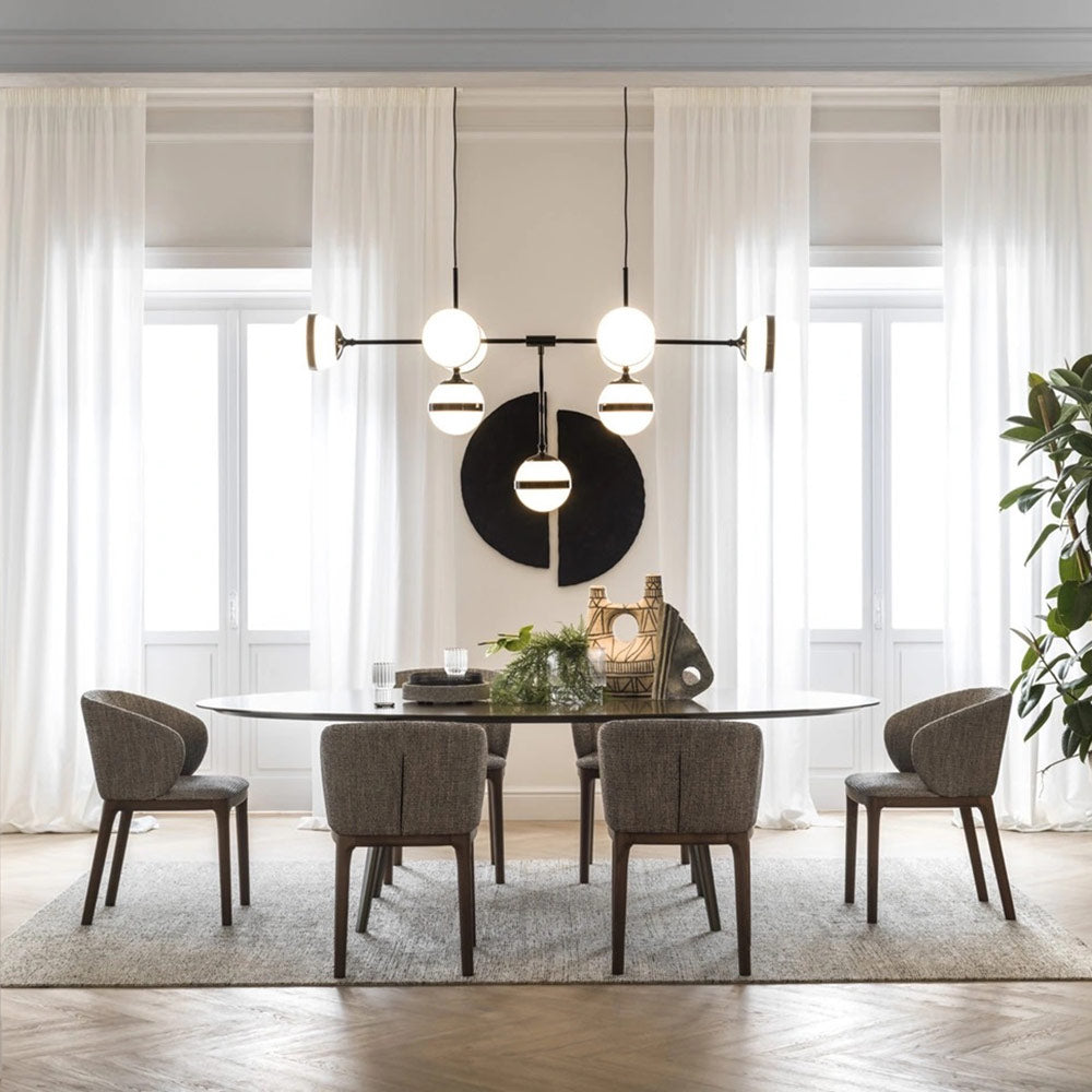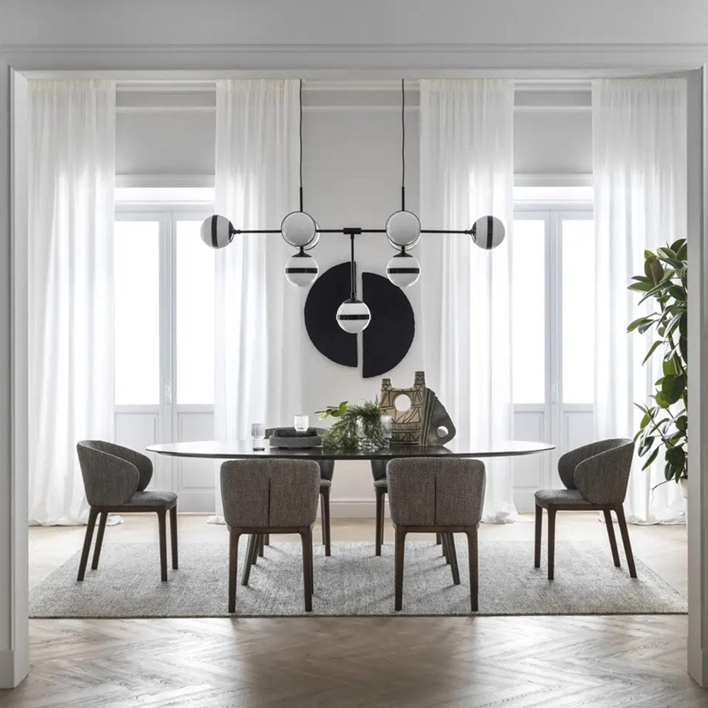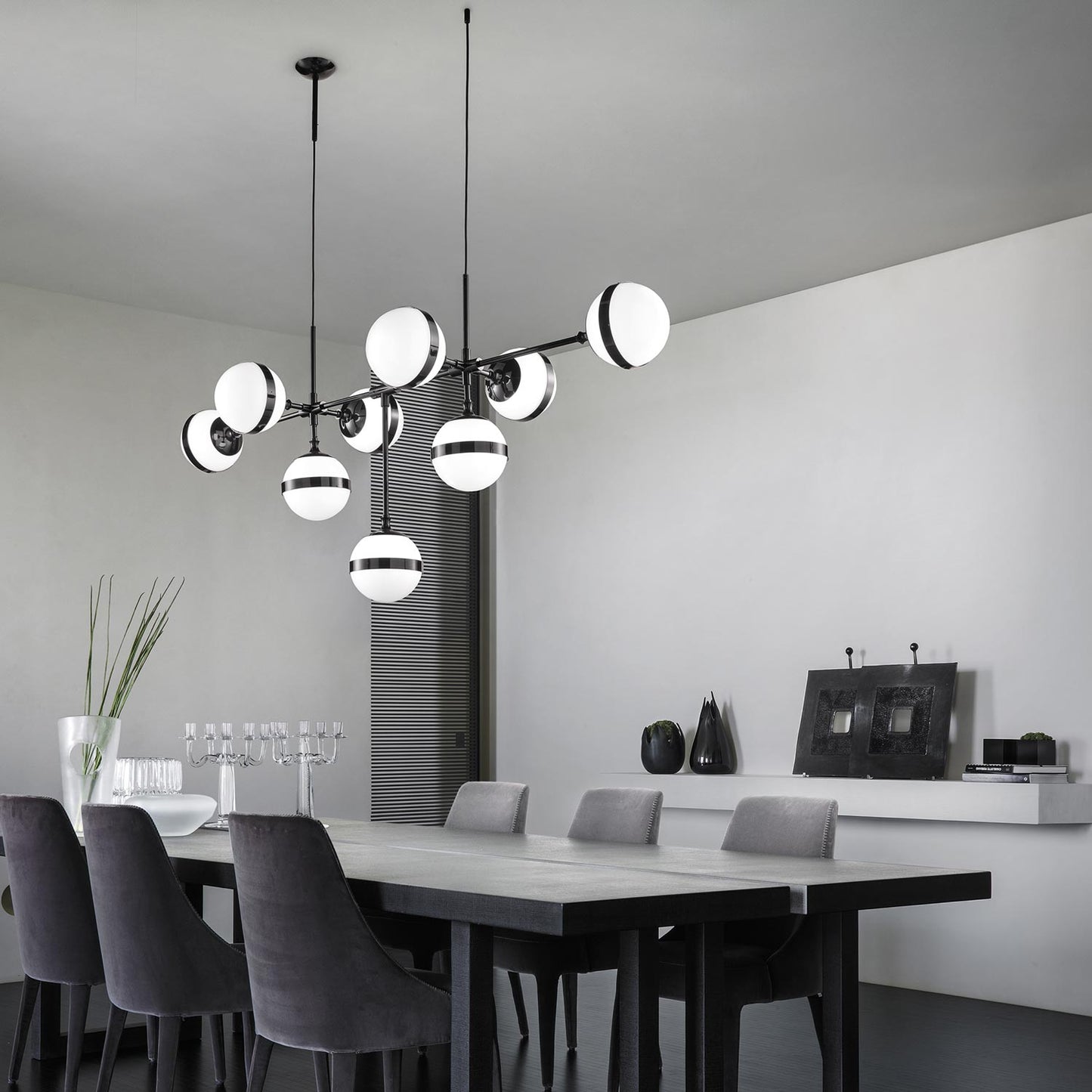 The Peggy Pendant Light from Vistosi engages in playful shaping to produce a whimsical source of lighting with tons of charm. Bring out the lighthearted ambiance in any setting with a pendant focusing on shaping, blending slender metal framing with decadent and delightful glass sphere shades. This versatile fixture is a perfect match for casual design schemes and more classic sophisticated spaces.
