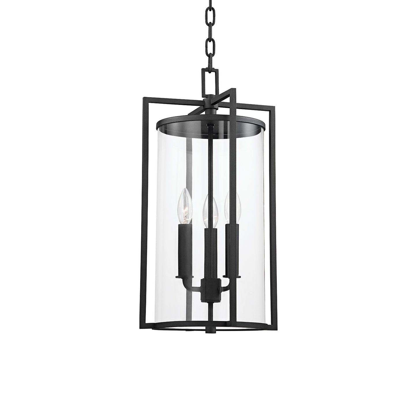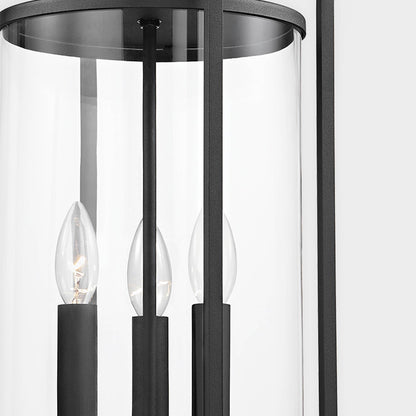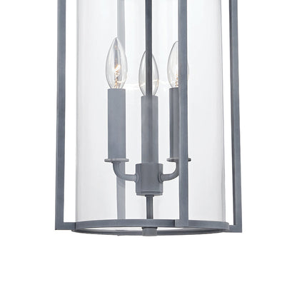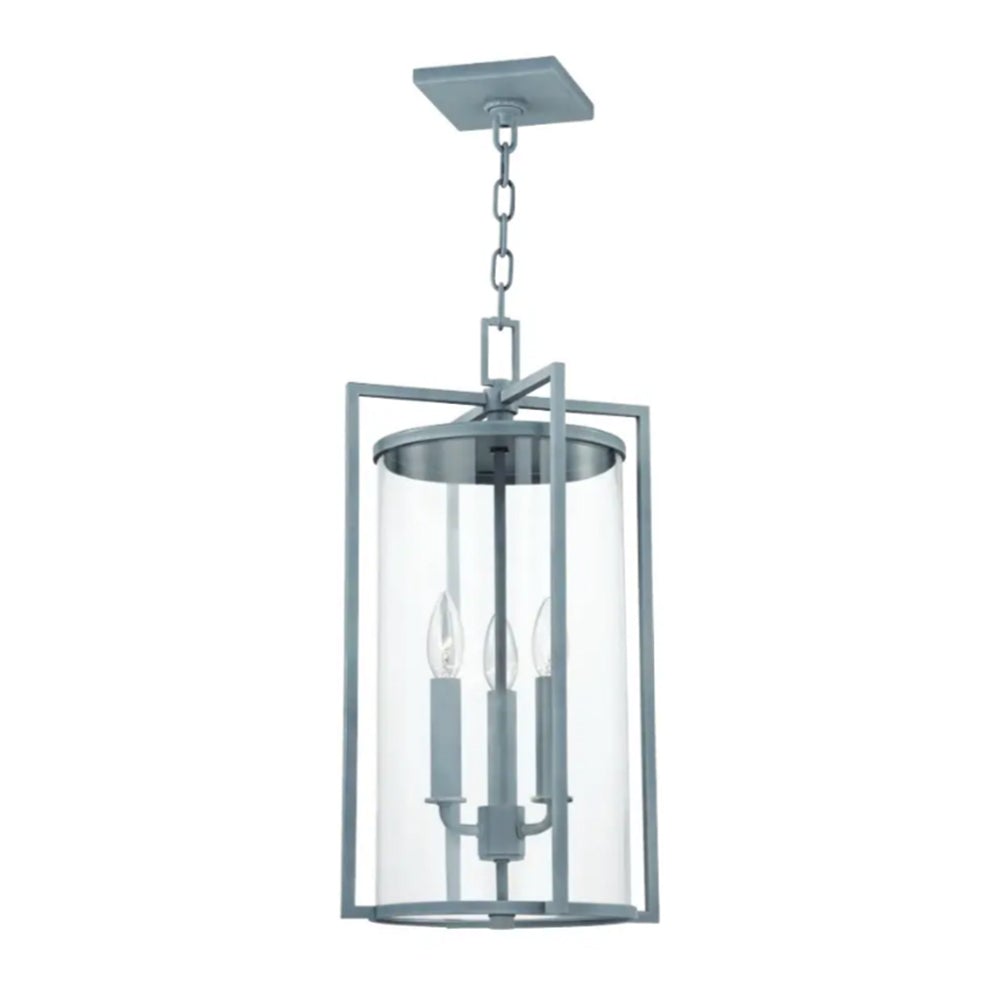 A consortium of styles delivers village-inspired charm with coastal flair, as the Percy Outdoor Pendant Light from Troy Lighting offers a striking feel of drama with a romantic cluster of candelabra-style bulb sockets contrasting with uniform metalwork.