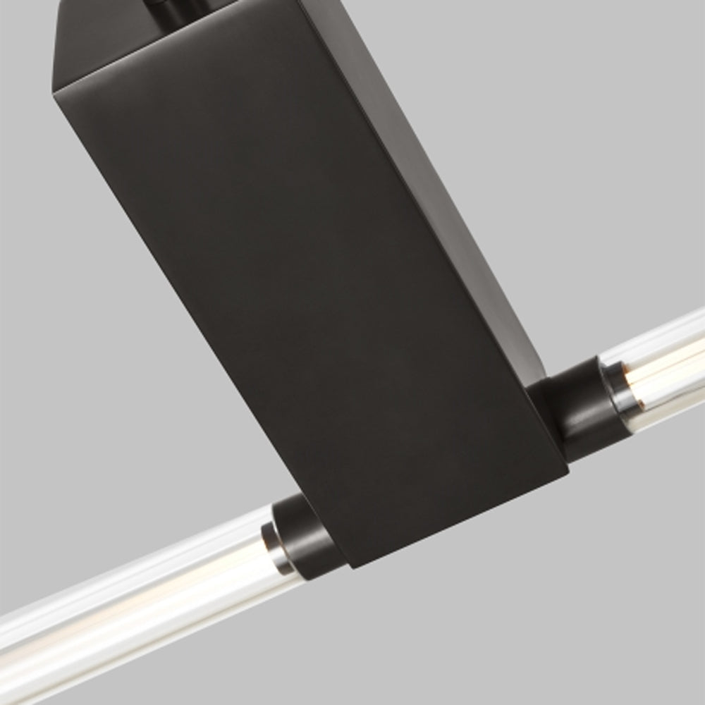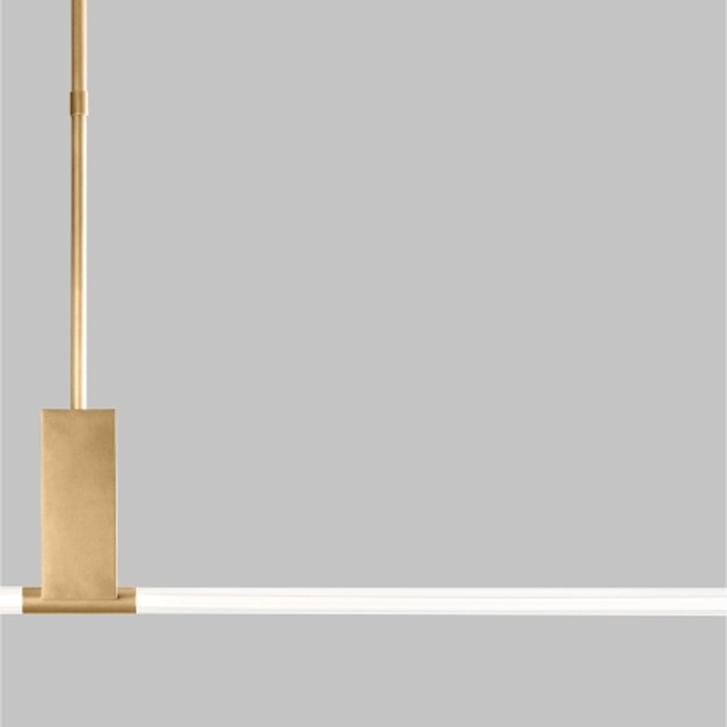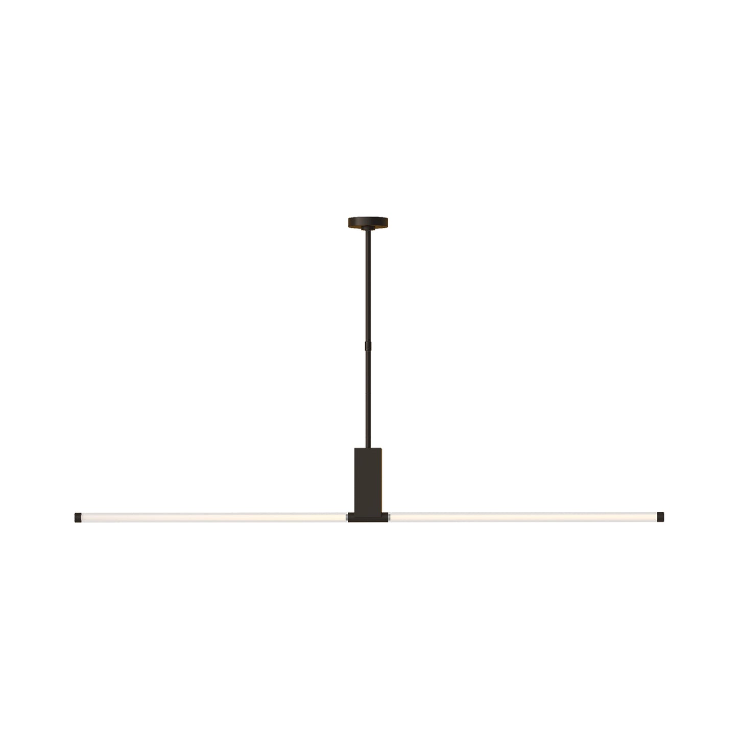 The Phobos LED Linear Pendant Light by Kelly Wearstler for Visual Comfort Modern exceptionally contemplates clean intersecting forms and the purity of tubular light in a modern dialogue of geometries. Radial and rectilinear landscapes create a sculptural world for customized LED lamping that features a central light-guide channeling for a fully diffused glow.