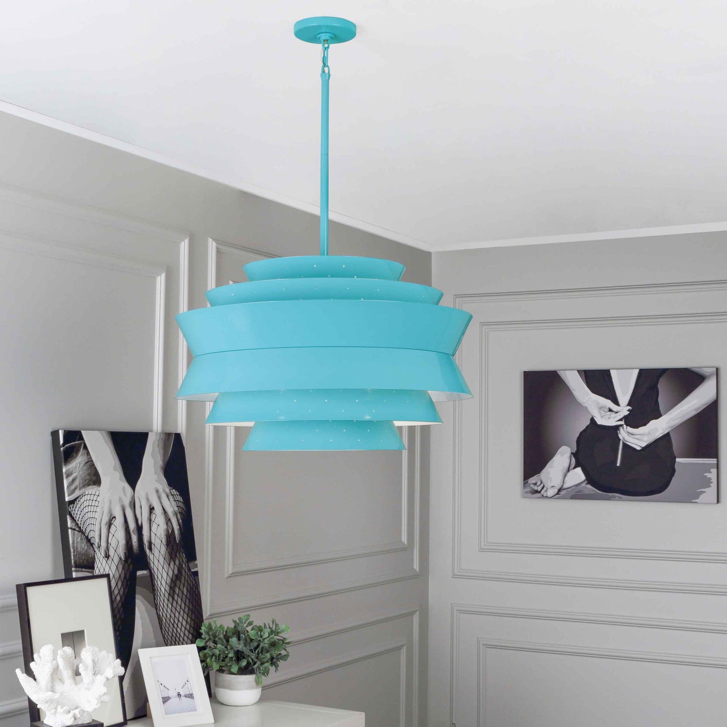 Choose from finishes ranging from bright to glam, customizing a modern space with the Pierce Large Pendant Light from Robert Abbey and using symmetry and energy to a distinct advantage.