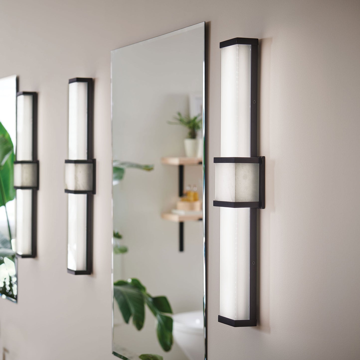 Turn your bathroom into a sanctuary with Pietra LED Bath Bar. Luxe materials and meticulous craftmanship add to the spa-like zen of this integrated LED collection. A prominent cast center bracelet features a piece of solid stone with natural veining and subtle coloration that gleams against the Chrome or Black finish. Sophisticated details including cast endcaps and mitered glass complete this captivating look.