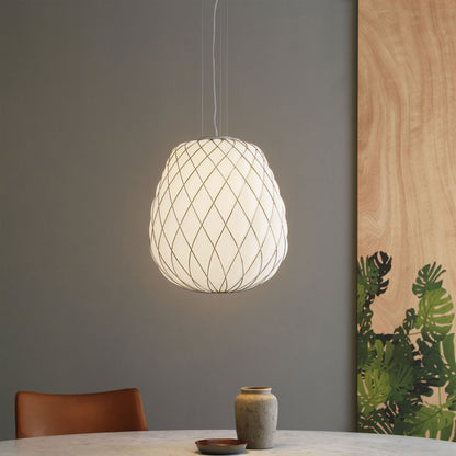Glass blown into a metal cage creates the stunning effect of the Pinecone Pendant Light from FontanaArte. A truly artistic addition over an entry or breakfast nook, this pendant creates beautiful texture and dimensionality.