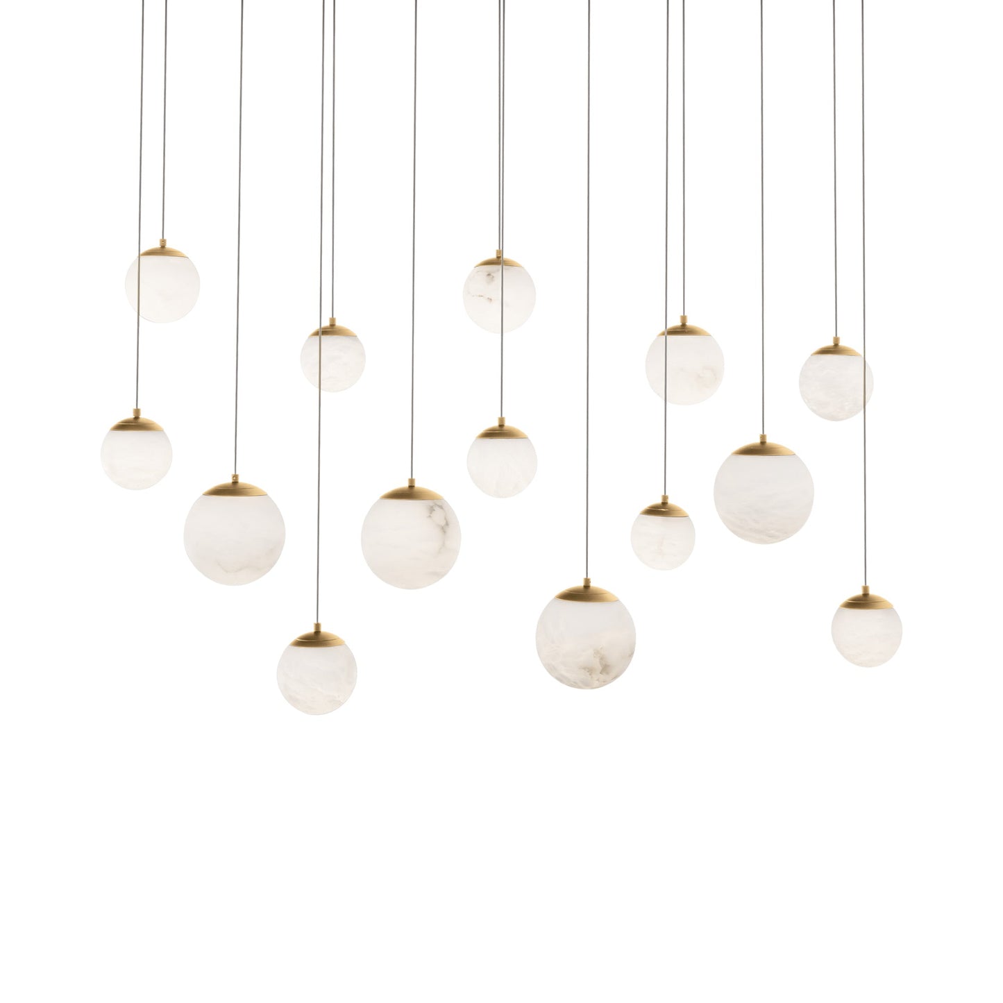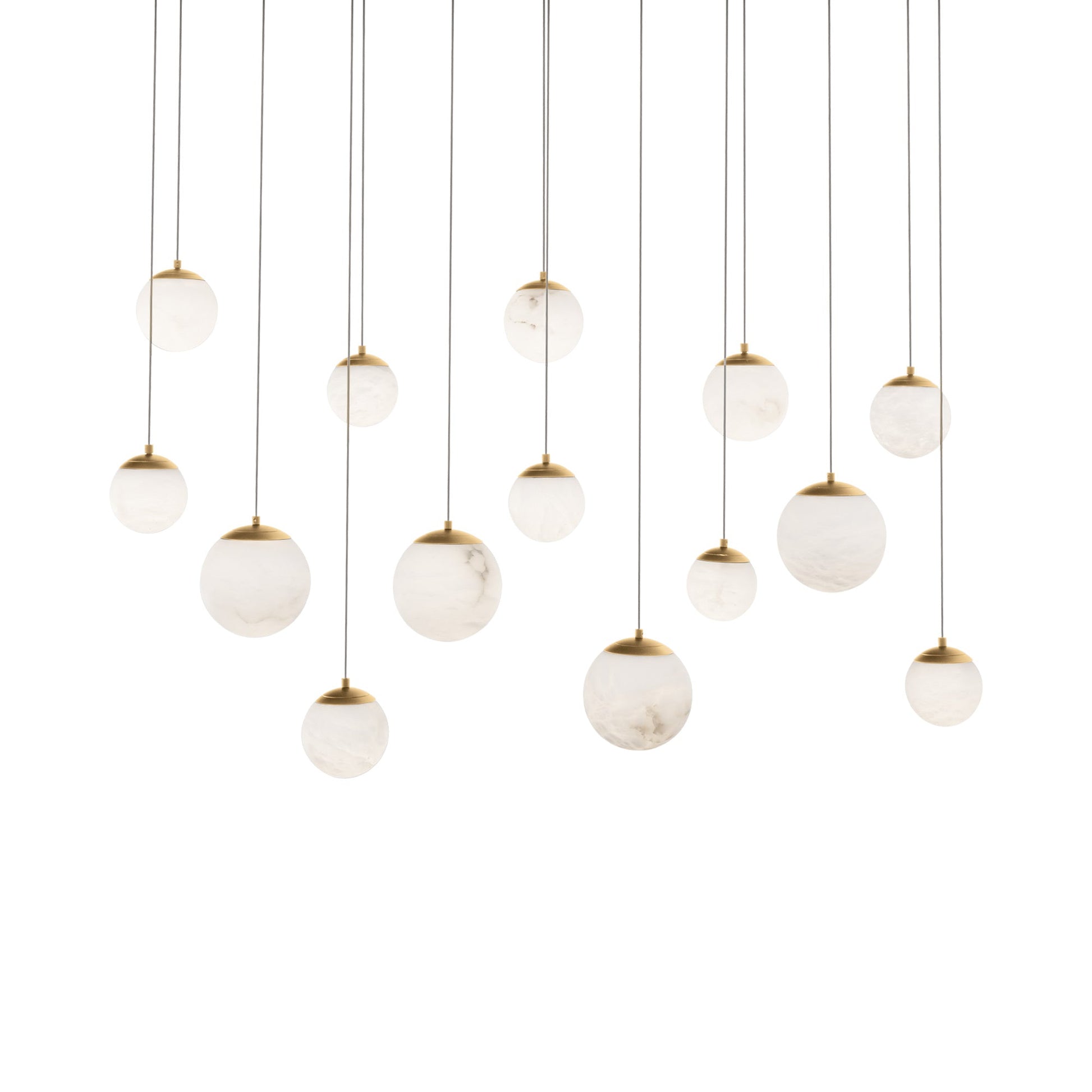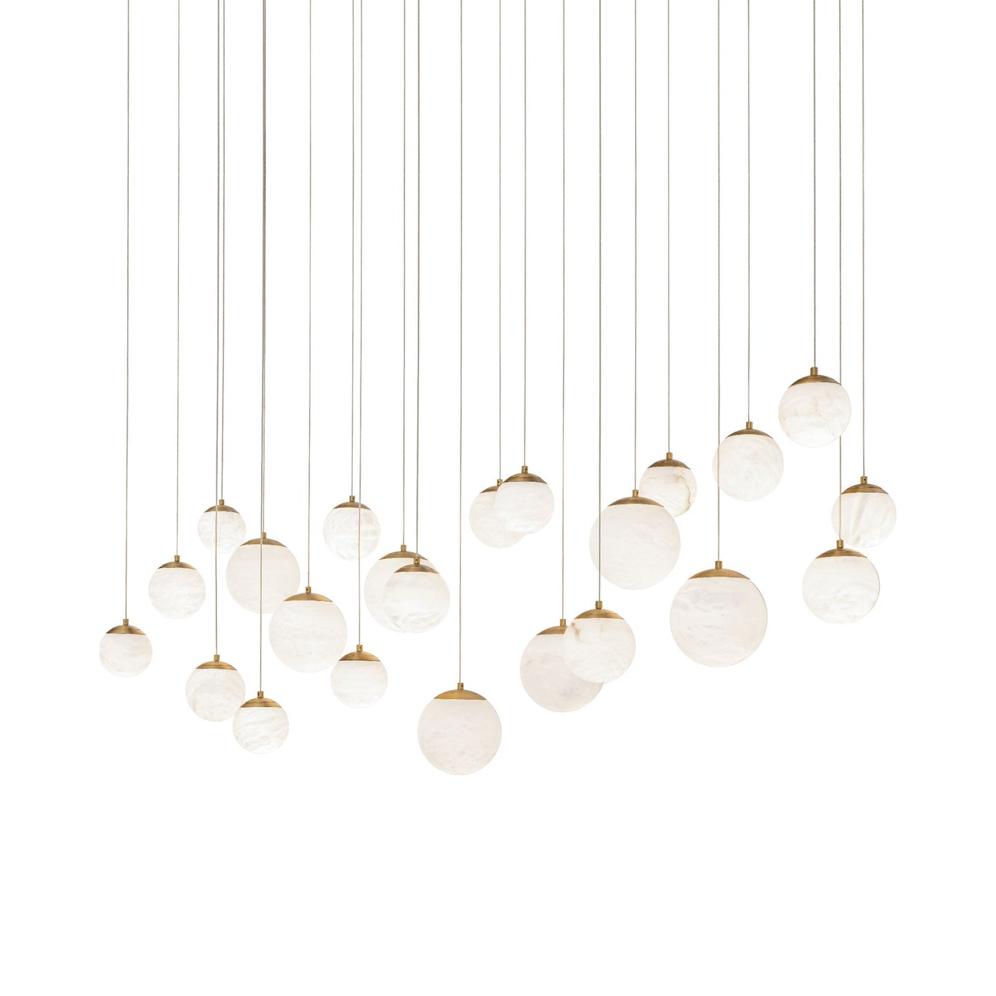 Celestial elegance infuses the Pisces LED Linear Pendant Light from Modern Forms. Petite orbs of natural Spanish alabaster shine and glow, with natural veining and metal caps that bring dimension and depth. The multi-point pendant is a stunning centerpiece, create fresh elegance over your living or dining room.