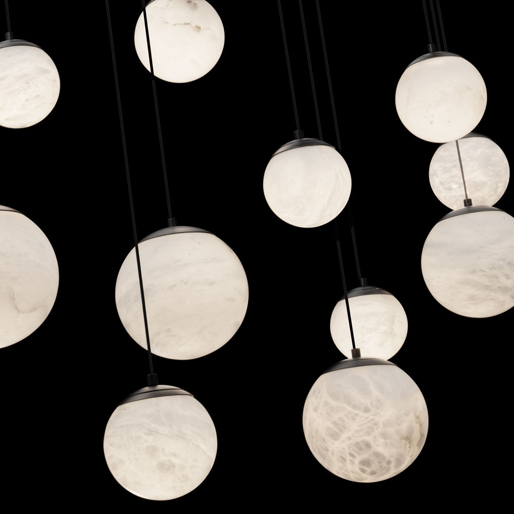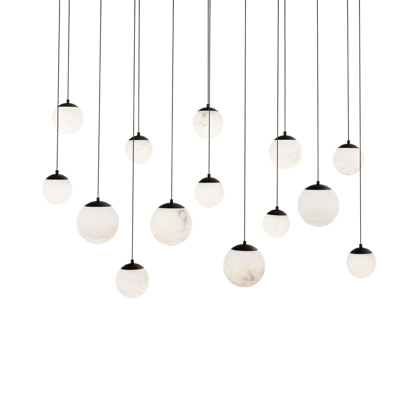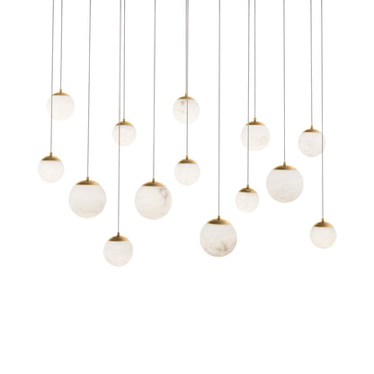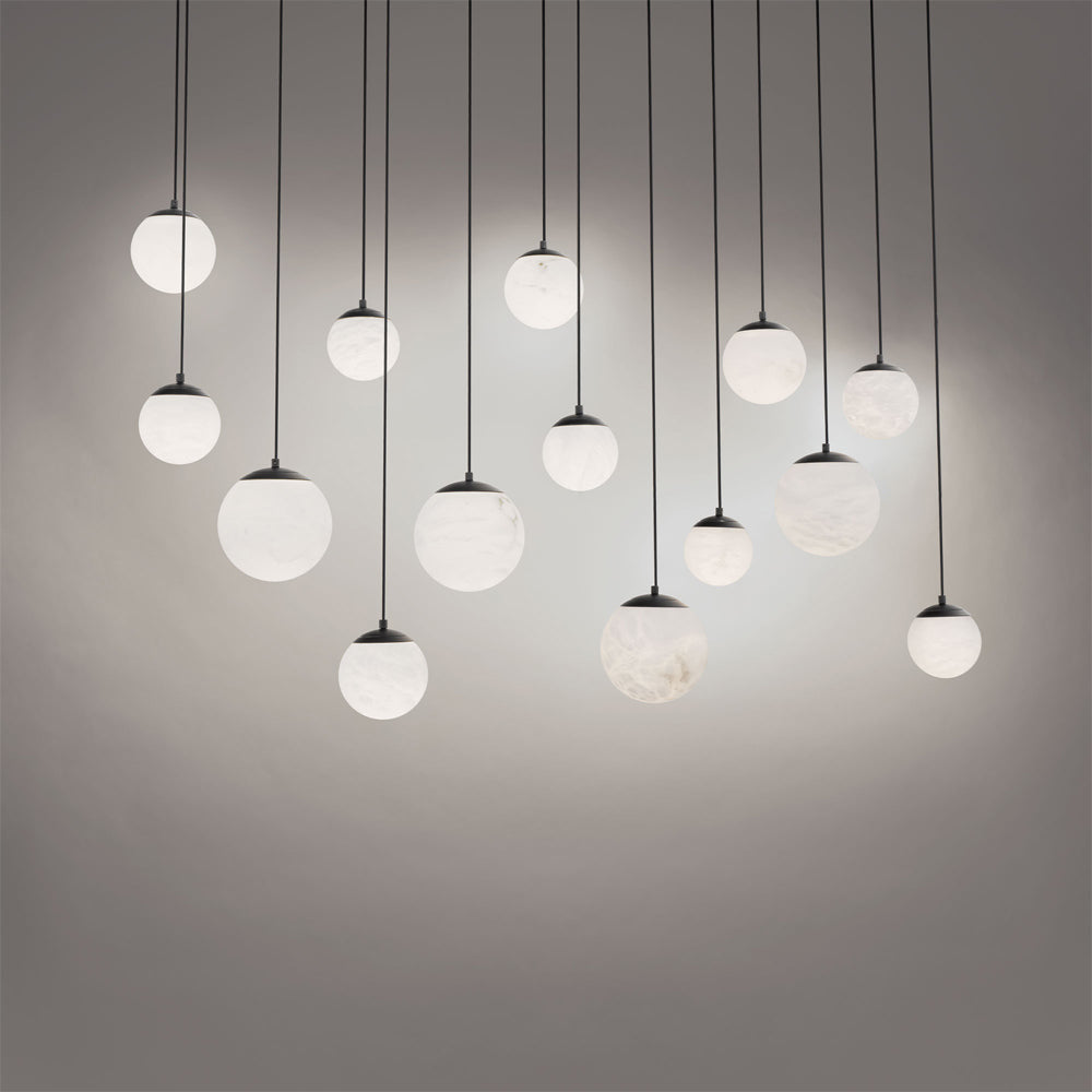 Celestial elegance infuses the Pisces LED Linear Pendant Light from Modern Forms. Petite orbs of natural Spanish alabaster shine and glow, with natural veining and metal caps that bring dimension and depth. The multi-point pendant is a stunning centerpiece, create fresh elegance over your living or dining room.