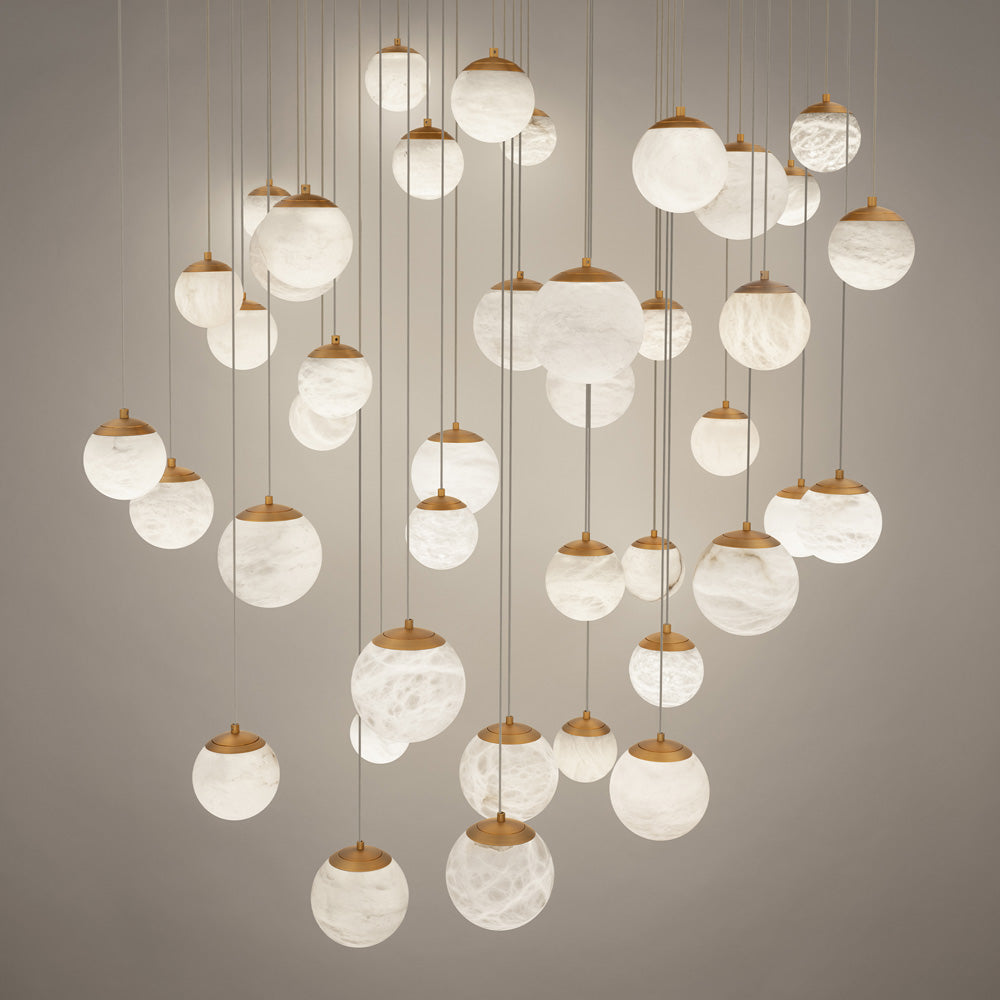 Glowing Spanish alabaster orbs gleam like a full moon in the radiant Pisces Square LED Pendant Light from Modern Forms. Embracing celestial elegance and sophistication, the fixture is a superb choice over a foyer or dining able, delivering stellar radiance and warm, glowing illumination for every occasion.