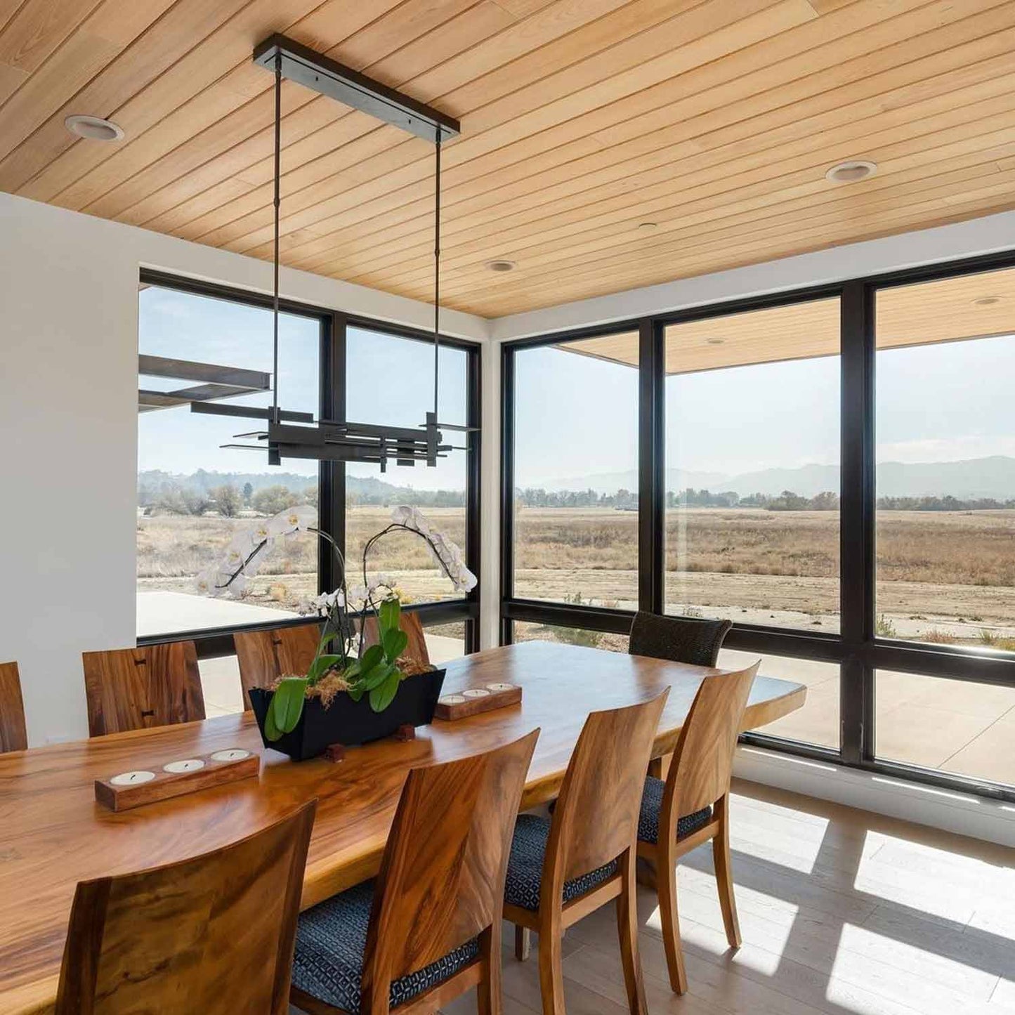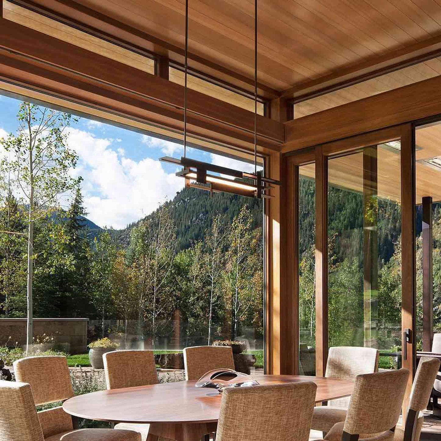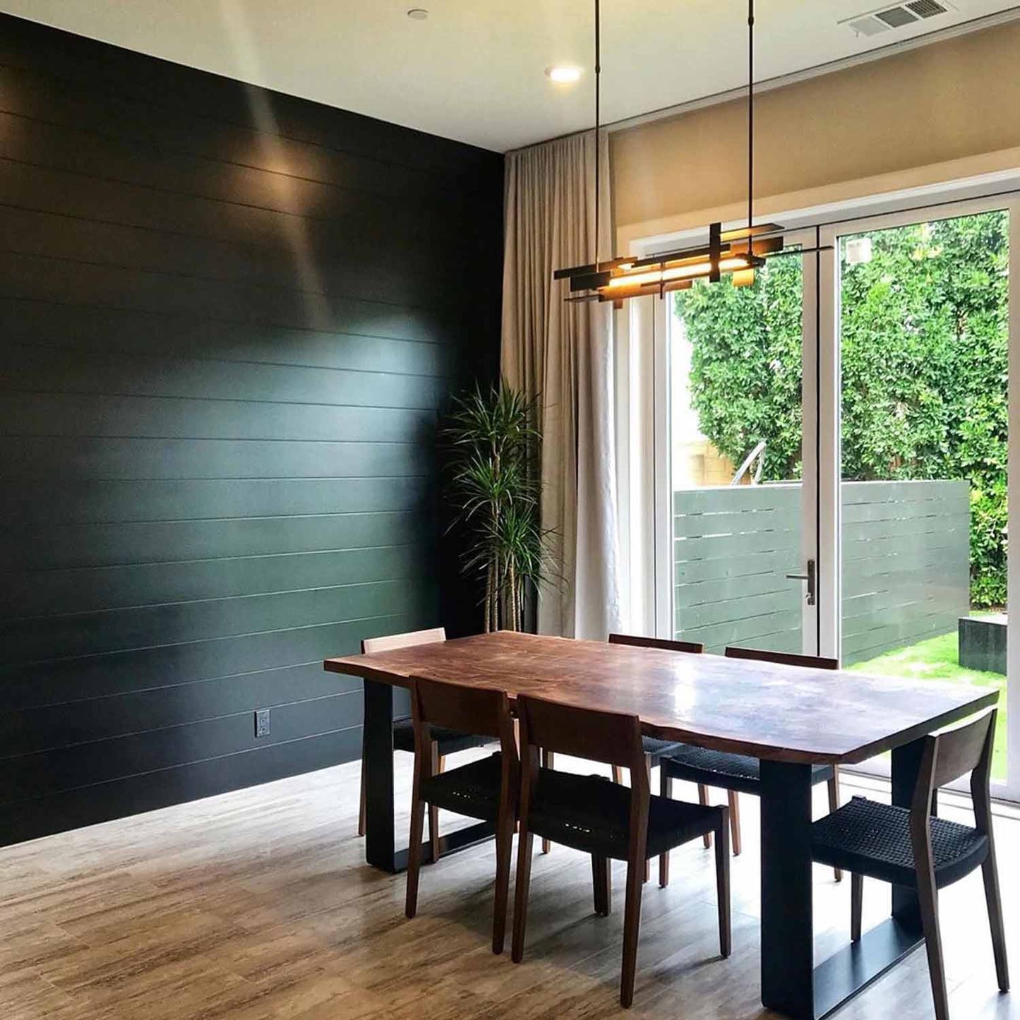Bisecting bars of metal create a stylish confluence for the two-tone Planar Accent LED Pendant Light from Hubbardton Forge.