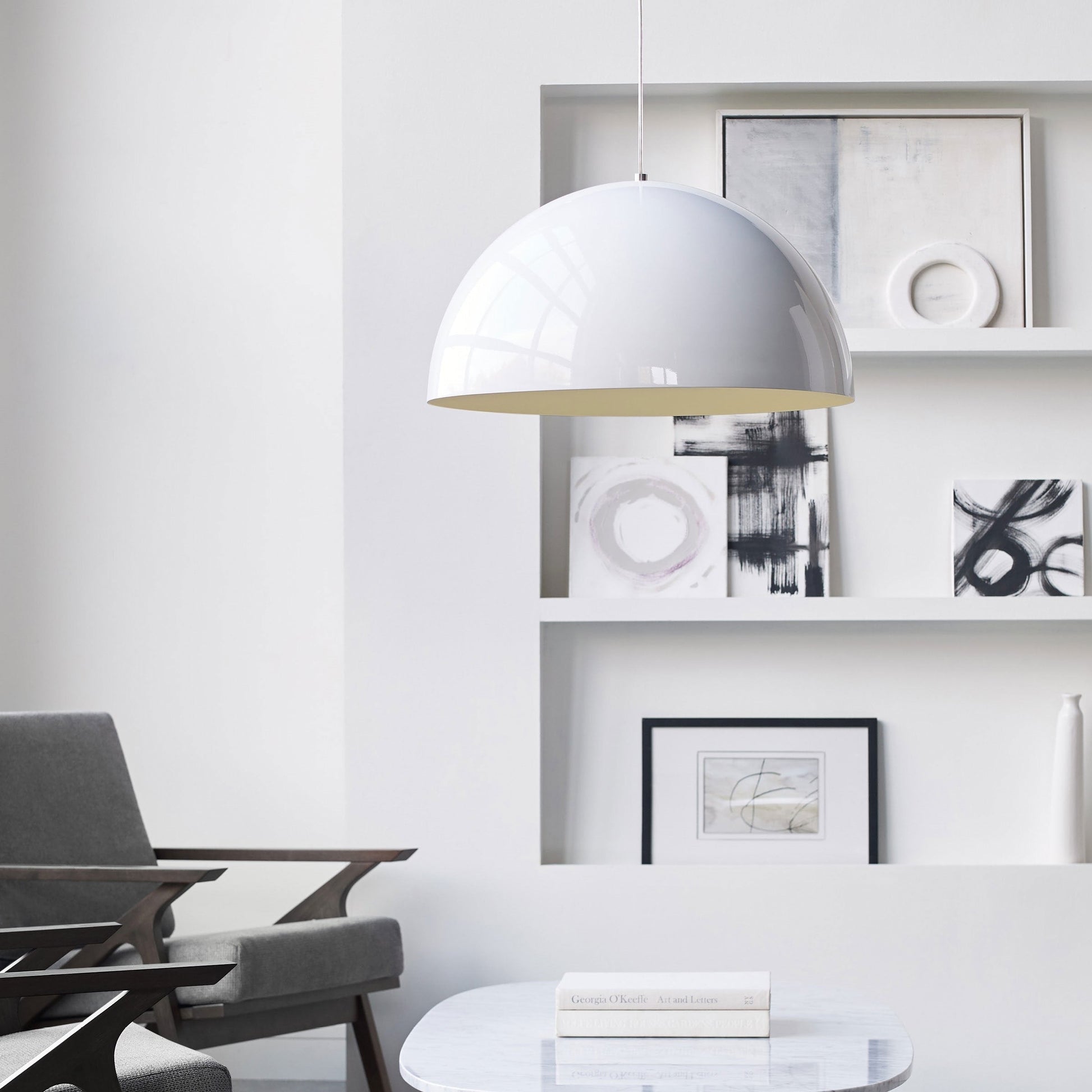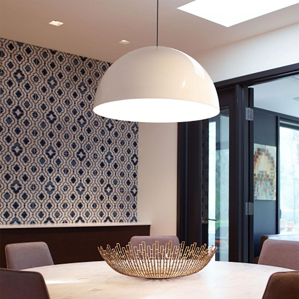 The Powell Street Pendant Light from Visual Comfort Modern is sleek and contemporary with its attractive glossy finish. This high-end luxurious pendant features a high gloss finish to its exterior and two modern matte interior finishes. Choose between four color combinations and three on-trend hardware finishes. Lamping options include energy efficient LED or no lamp. LED lamping is fully dimmable to create the desired ambiance in your special space. The Powell Street Pendant is ideal for kitchen island task lighting, conference room lighting and countless commercial application spaces.