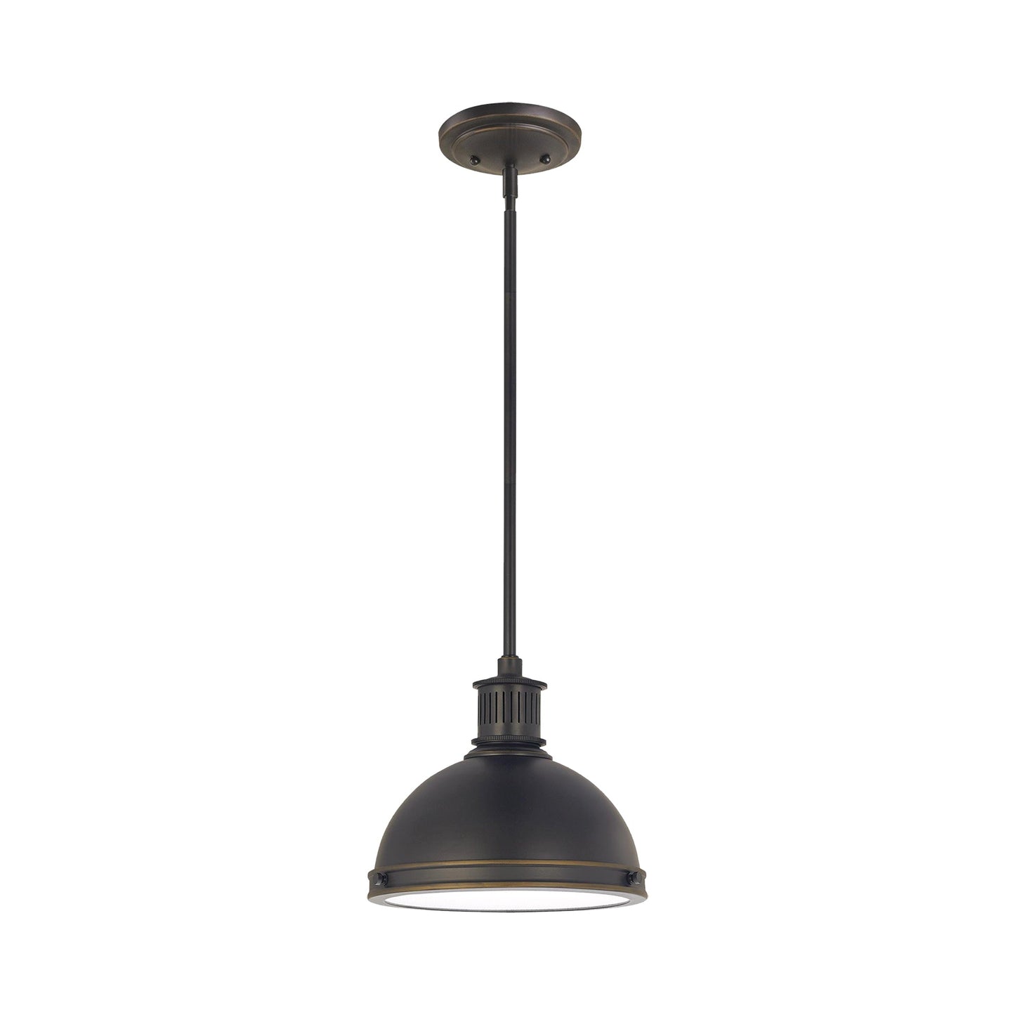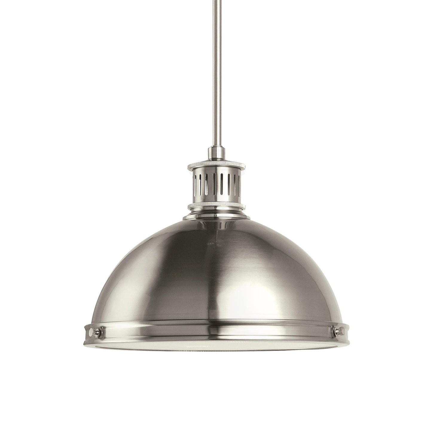 Inspired by industrial lighting, the hard-working, large-scale Pratt Street metal pendants by Sea Gull Lighting put light where you need it, while making a significant design statement. Offered in a choice of Brushed Nickel, Satin Bronze or Autumn Bronze finishes, the one-light, two-light and three-light pendants are all fully enclosed with a prismatic diffusor at the bottom to spread light output evenly and alleviate glare. The pendants are available in incandescent and ENERGY STAR-qualified LED versions, and all can easily convert to LED by purchasing LED replacement lamps sold separately.