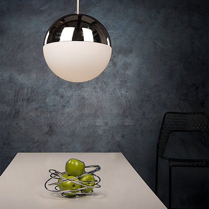 Half mouth-blown etched opal glass, half reflective chrome, 100% cutting-edge, the Punk LED Pendant Light brings spherical flourish to modern décor with outstanding light output, customizable length and a glimmering finish.