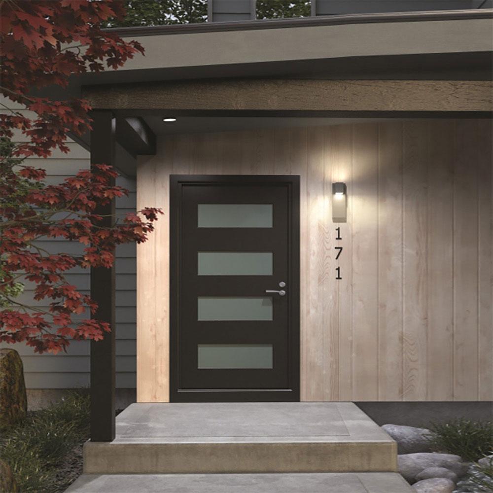 The Quadrate Outdoor LED Wall Light by Sean Lavin for Visual Comfort Modern creates uplight to softly graze architectural wall surfaces. The downlight accents the extended back plate, while the clean, modern LED lighting design is elegantly simple yet very impactful. Cleverly hidden hardware ensures a clean look. The dimmable Quadrate comes in two finishes Bronze or Silver. The Quadrate outdoor light is perfect for both residential lighting and commercial lighting use, such as flanking a front or back door to welcome visitors to a home or to a hotel lobby.
