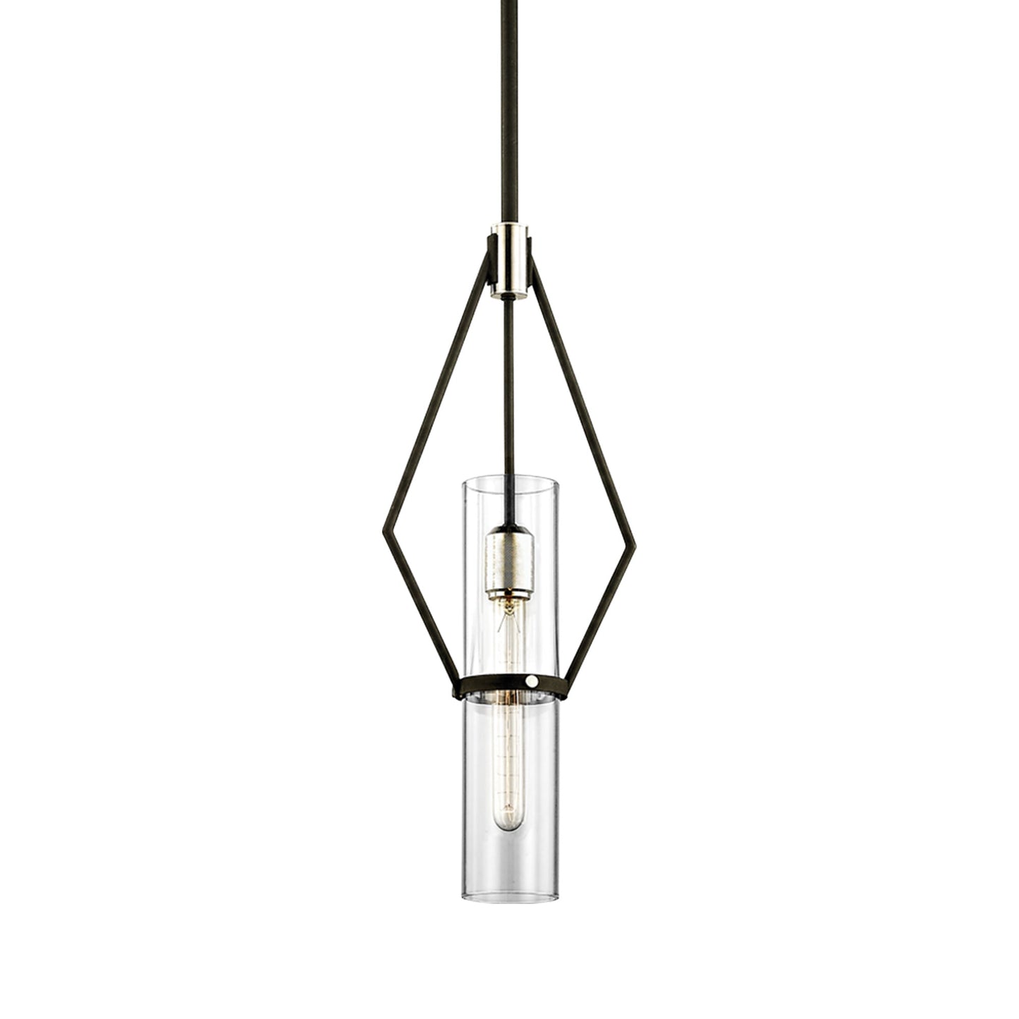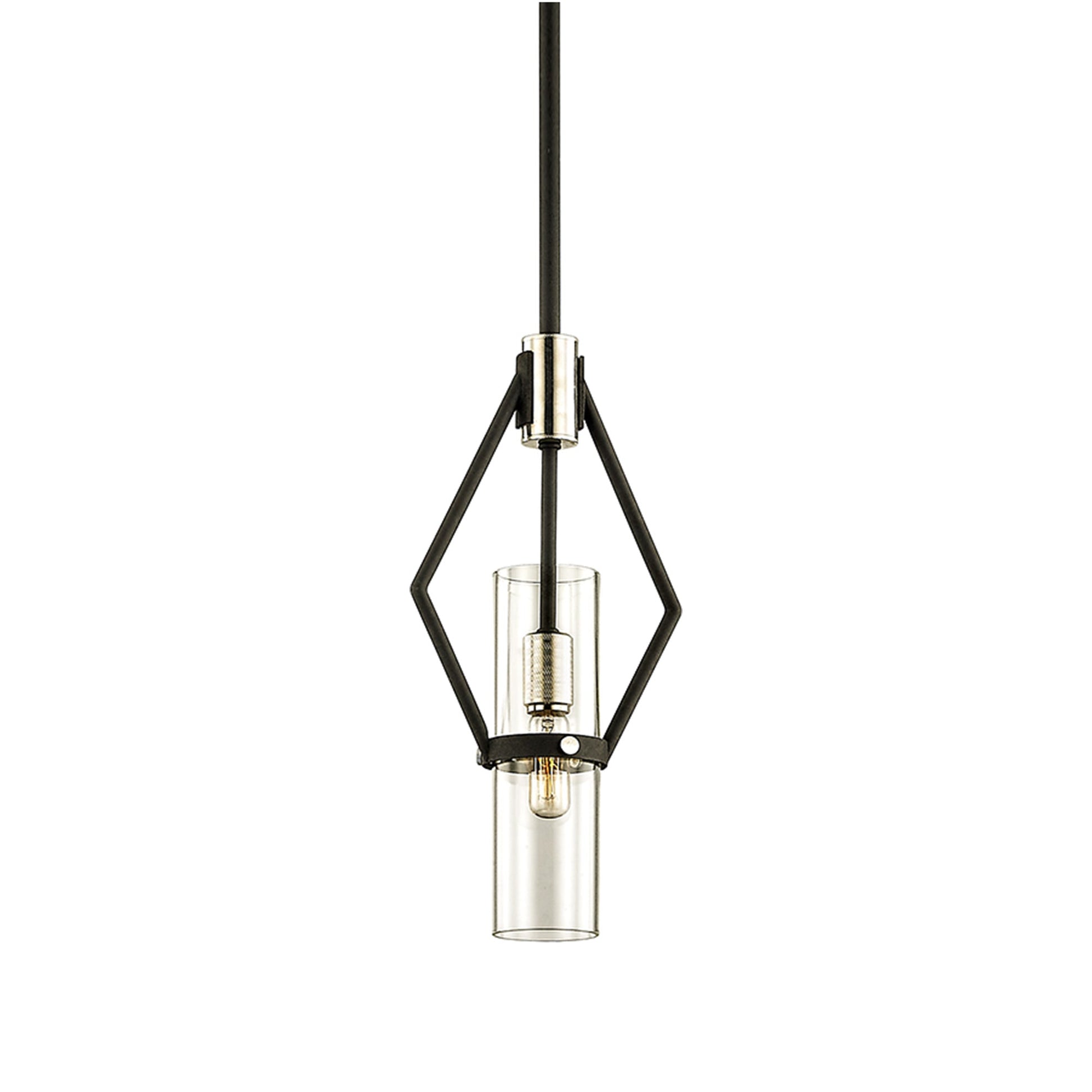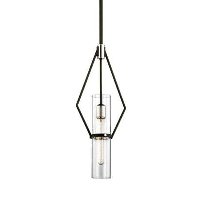 Bringing targeted lighting to a compact space, the Raef Mini Pendant Light from Troy Lighting offers a geometric silhouette blending a metal frame and accents with a clear glass cylinder shade.