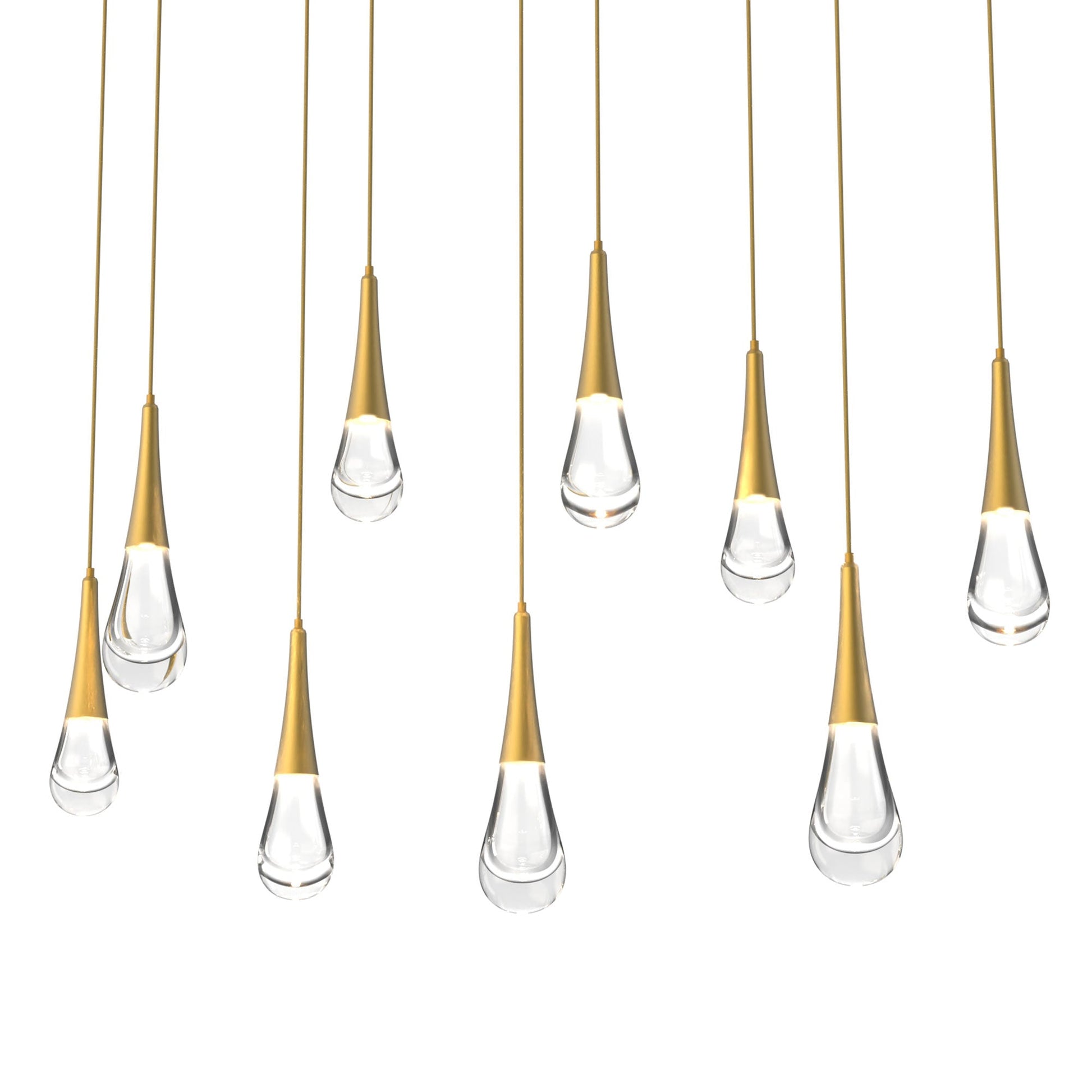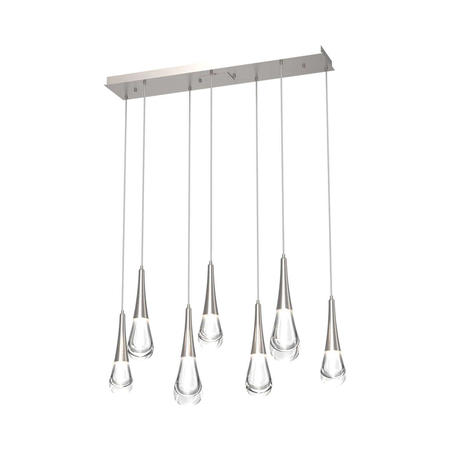 Add a breathtaking focal point to a contemporary dining room or interior space with the Raindrop LED Linear Pendant Light from Hammerton Studio. Catching the eye is a series of dew-like glistening blown glass pendants suspended on cables, lending a modern hat tip to the wonder of nature. Slender tapered caps conceal an LED bulb, making this energy-efficient pendant light a gorgeous addition to sustainable interiors.