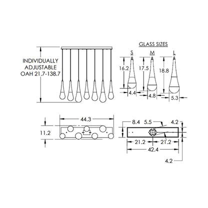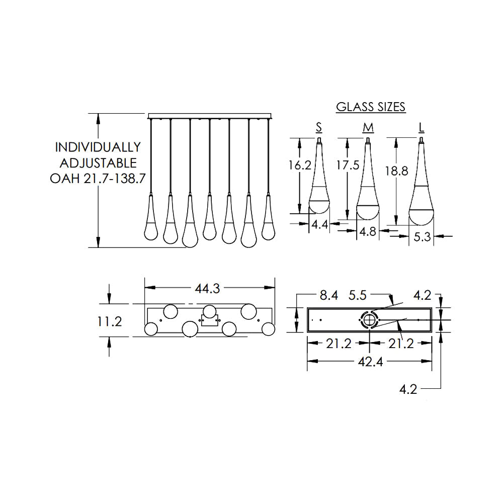 • 7-Light: 44.3"W X 21.7"H; 138.7" max height
