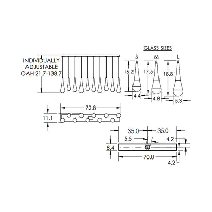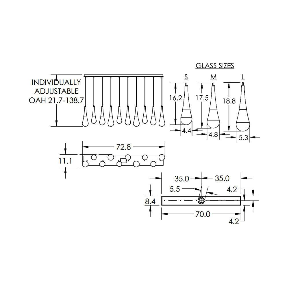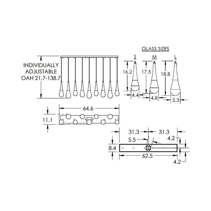 • 9-Light: 64.6"W X 21.7"H; 138.7" max height