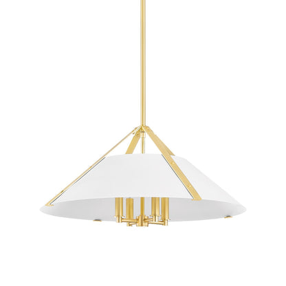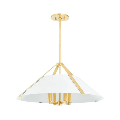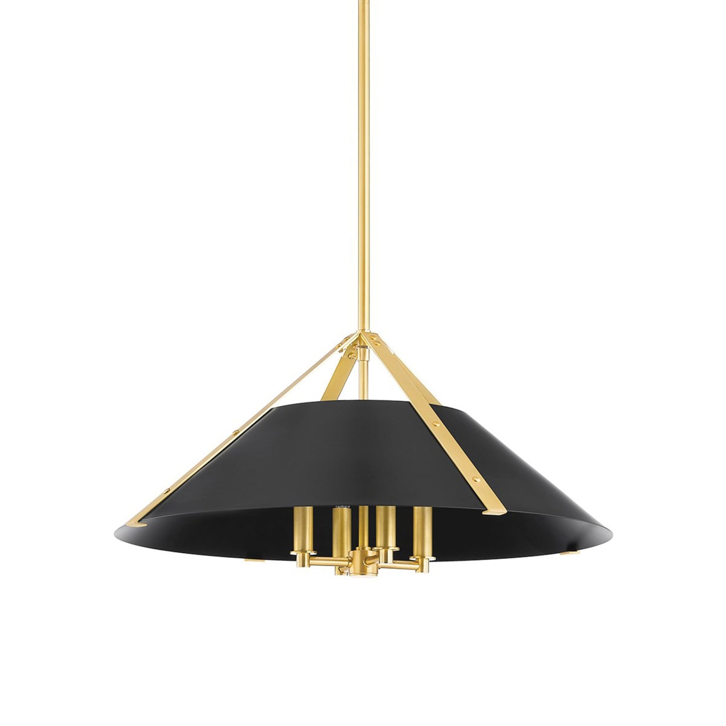 Extraordinary with a gorgeous finish palette and striking industrial design, the Raymond Pendant Light from Hudson Valley Lighting plays up the easy elegance craved in custom yet casual spaces. A structural design configuration leans on geometric shaping with a slender cone shade and metal strips forming a busy style motif, bringing a rather dramatic impact to kitchens, dining rooms, and entryways.