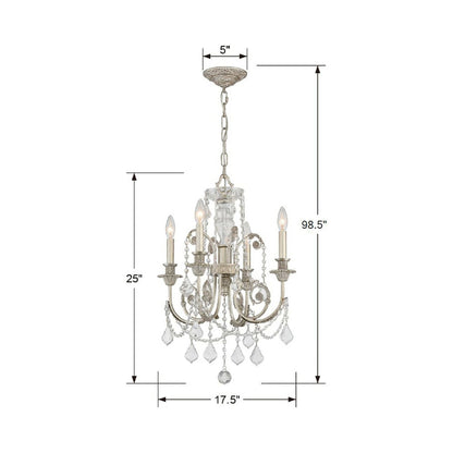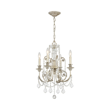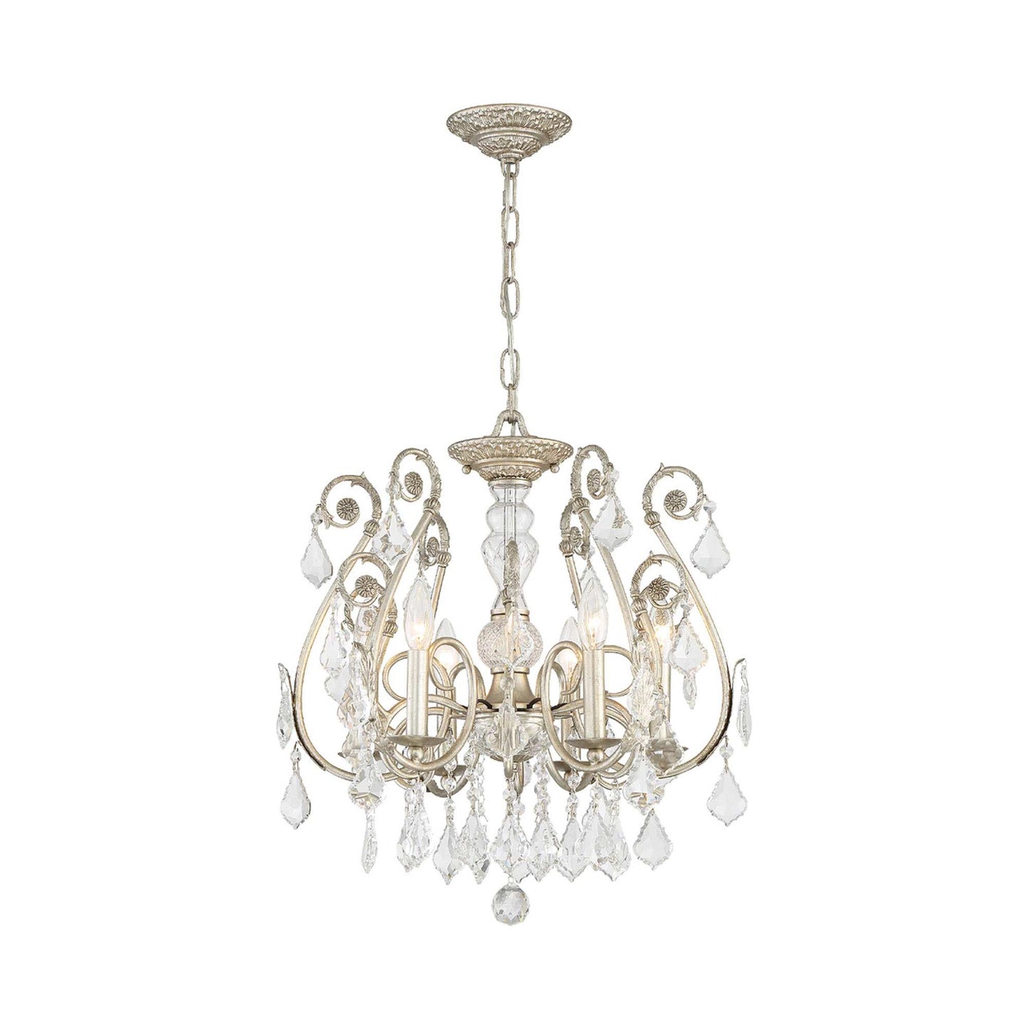 Beautifully fluid silhouetting takes metal to a new level in a light fixture dripping with both artistry and glam. The Regis Mini Chandelier from Crystorama offers an extravagant flavor in compact spaces like nooks and corners, replicating the decadence found in larger settings. Candelabra lights preserve vintage-like charm, with drops of crystal reflecting light in a majestic manner.