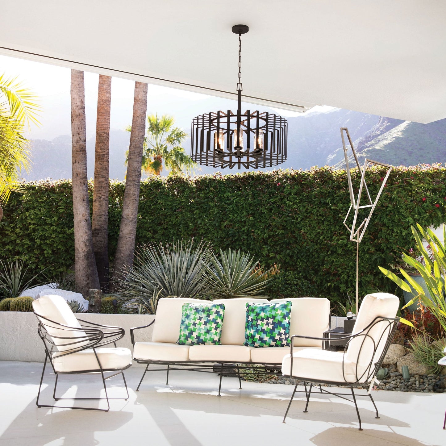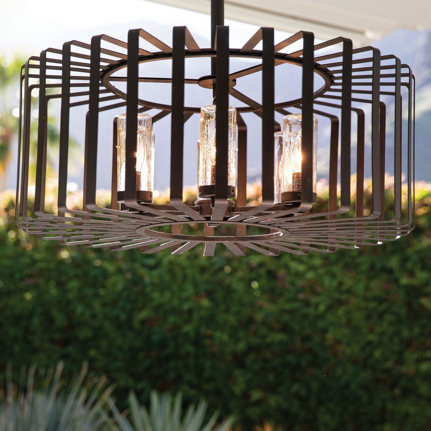 Reud Outdoor Pendant Light uses an iconic profile featuring an airy, open cage to capture the center of attention. A candelabra with clear seedy glass columns highlights the transitional style, making it a modern mix of classic and contemporary. Weather-resistant metal with a Brushed Graphite finish complements any space, inside or out.