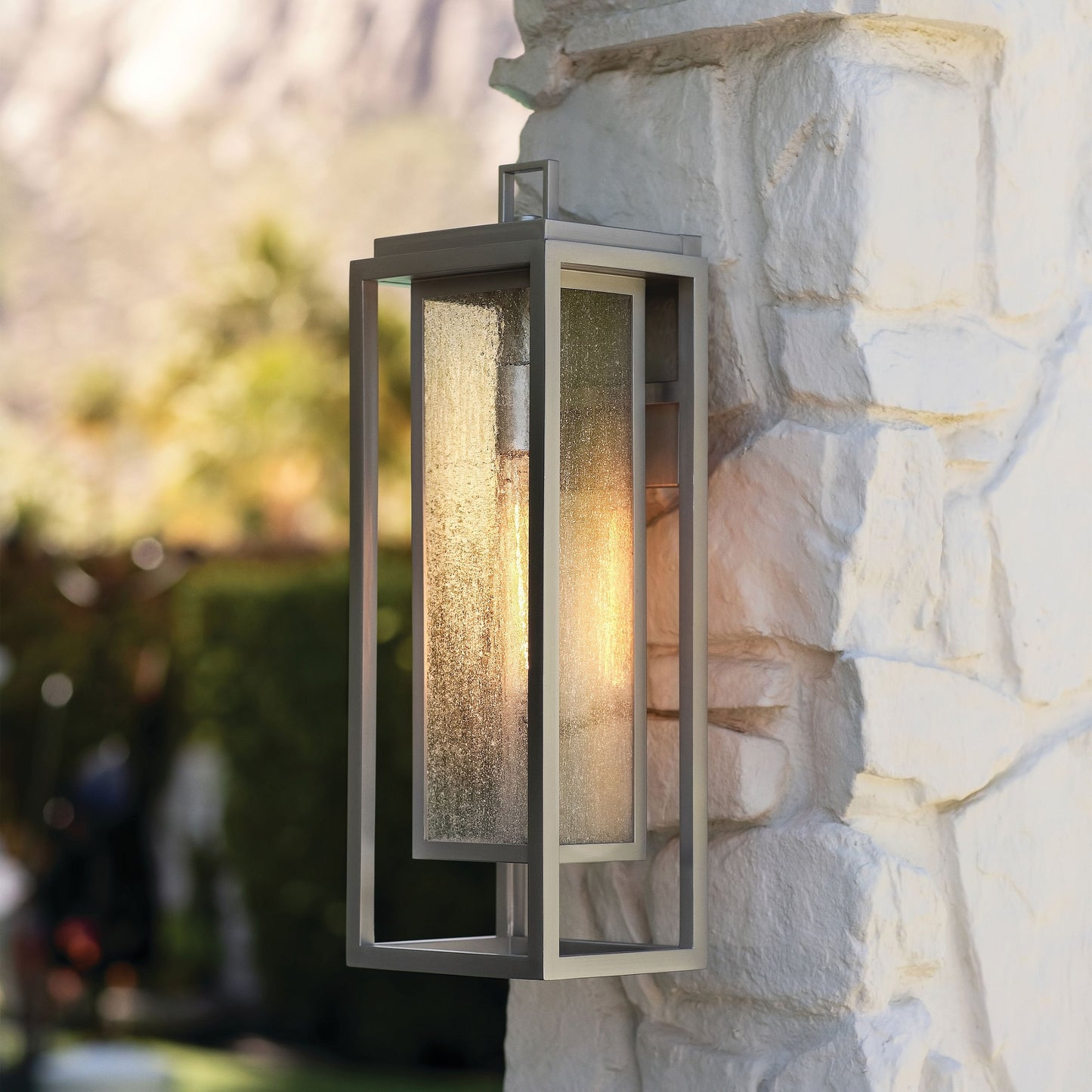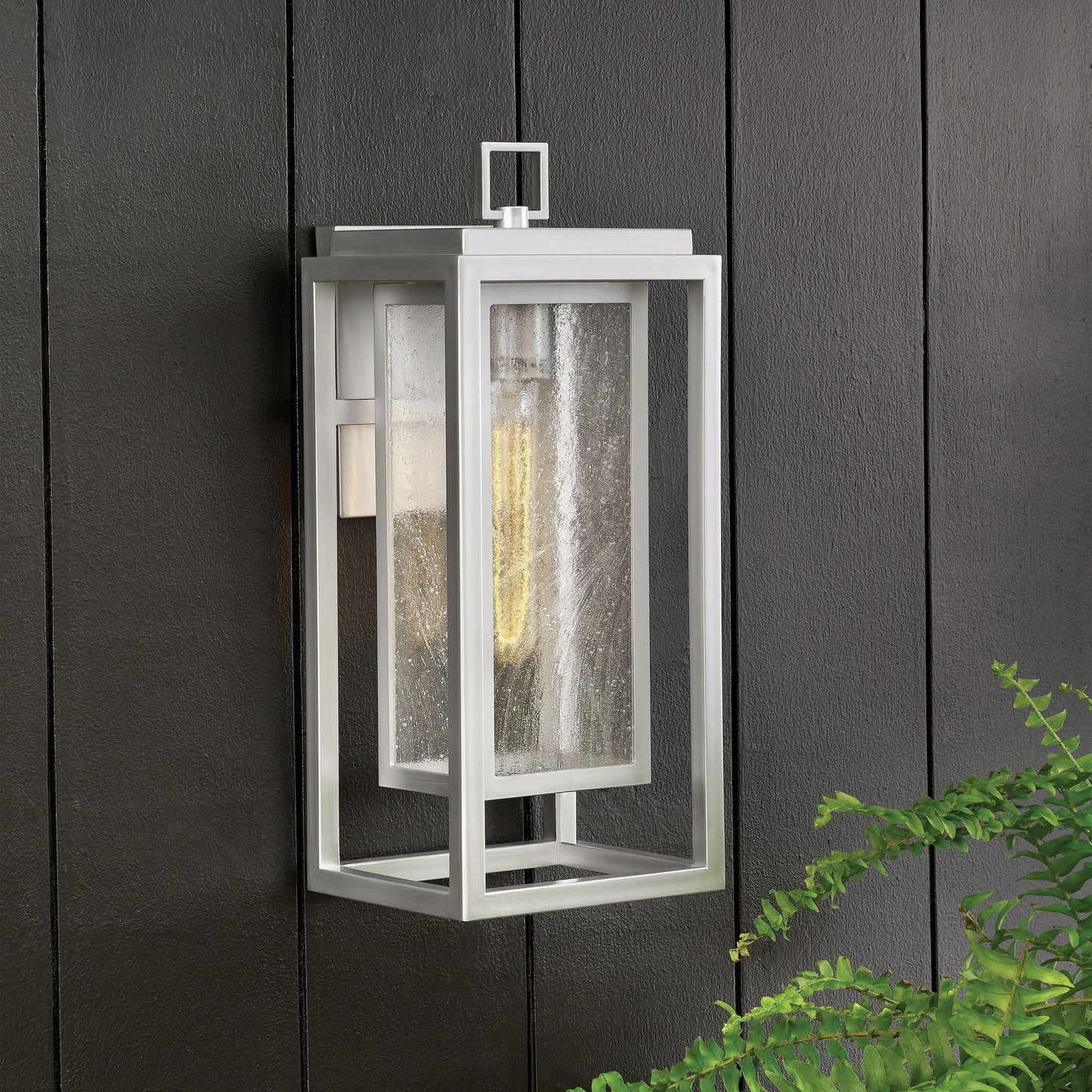 Republic Outdoor Wall Light’s striking double frame design, constructed from a composite material and treated with an anti-fading agent for maximum durability, is at home on the coast or a country lodge. The Oil Rubbed Bronze, Satin Nickel and Black resilience finishes feature a 5-year warranty and are resistant to rust and corrosion. Vintage filament bulbs are recommended to complete a stylish look.